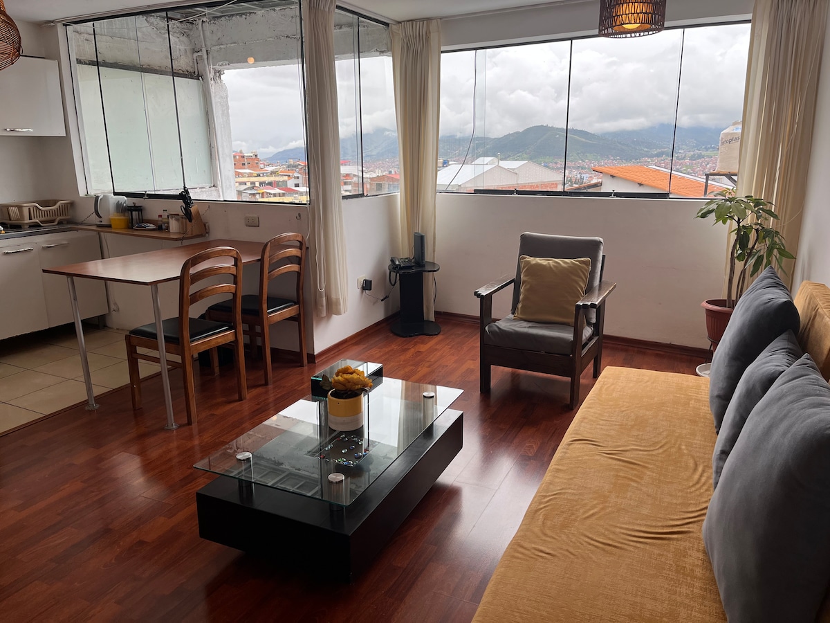 " TERRACE HOUSE 401 " Lindo apartamento amplio y equipado, cuenta con iluminación natural, tiene un balcón privado desde el cual puedes disfrutar la hermosa vista de la ciudad del Cusco. Este apartamento te va a encantar. Se encuentra a 5 minutos del centro histórico, ubicado en el famoso Barrio de San Blas, en los alrededores encontrarás el mercado tradicional, restaurantes, farmacias, supermercados, cafeterías y lavanderías. Es ideal para el descanso pues no existe mucho tráfico vehicular.