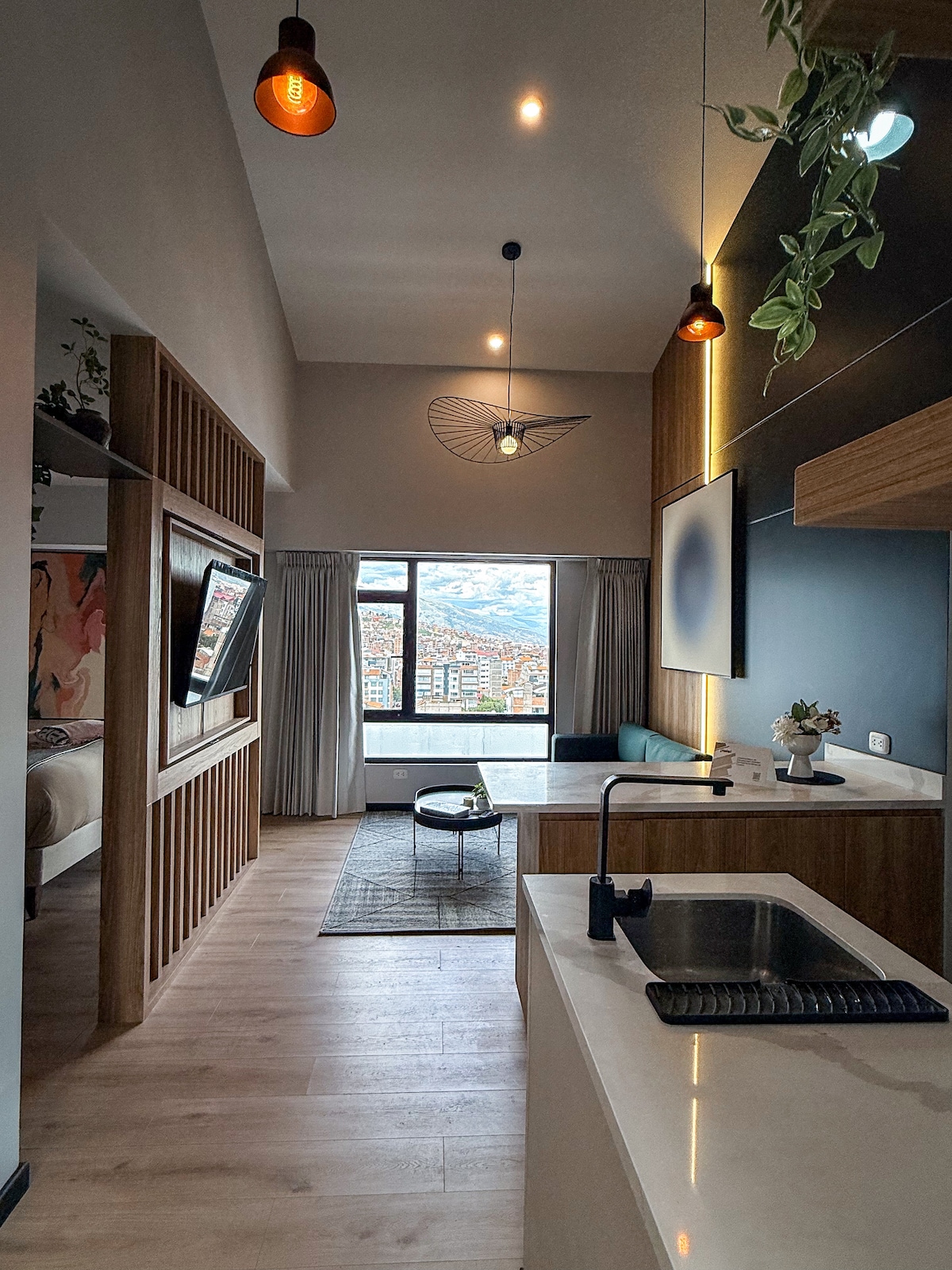 Wake up to panoramic views of Cusco bathed in morning light. This bright, design-forward duplex blends natural warmth with modern comfort, where large windows and open spaces frame the city’s skyline. Built on sacred Inca land once home to the lineage of Inca Manco Cápac, it sits just a 10-minute walk from Sacsayhuamán and Plaza de Armas — close to the city’s pulse yet perfectly peaceful for slow mornings and golden sunsets. We recycle and compost, honoring the spirit of this place.