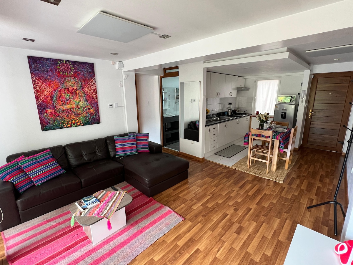 Welcome to our lovely Apartment. Its part of a typical colonial building, 10 Minutes walking to "Plaza de Armas". The Maisonette is independent with its own keys. The open kitchen got all you need for cooking. The local food and handcraft market "San Pedro" is very close and interesting to visit. You surely will love the rain shower and the modern bathroom. Quality mattress and blankets provides you a comfortable sleep. The balcony invites you to relax with a cup of tea and enjoy the sun.