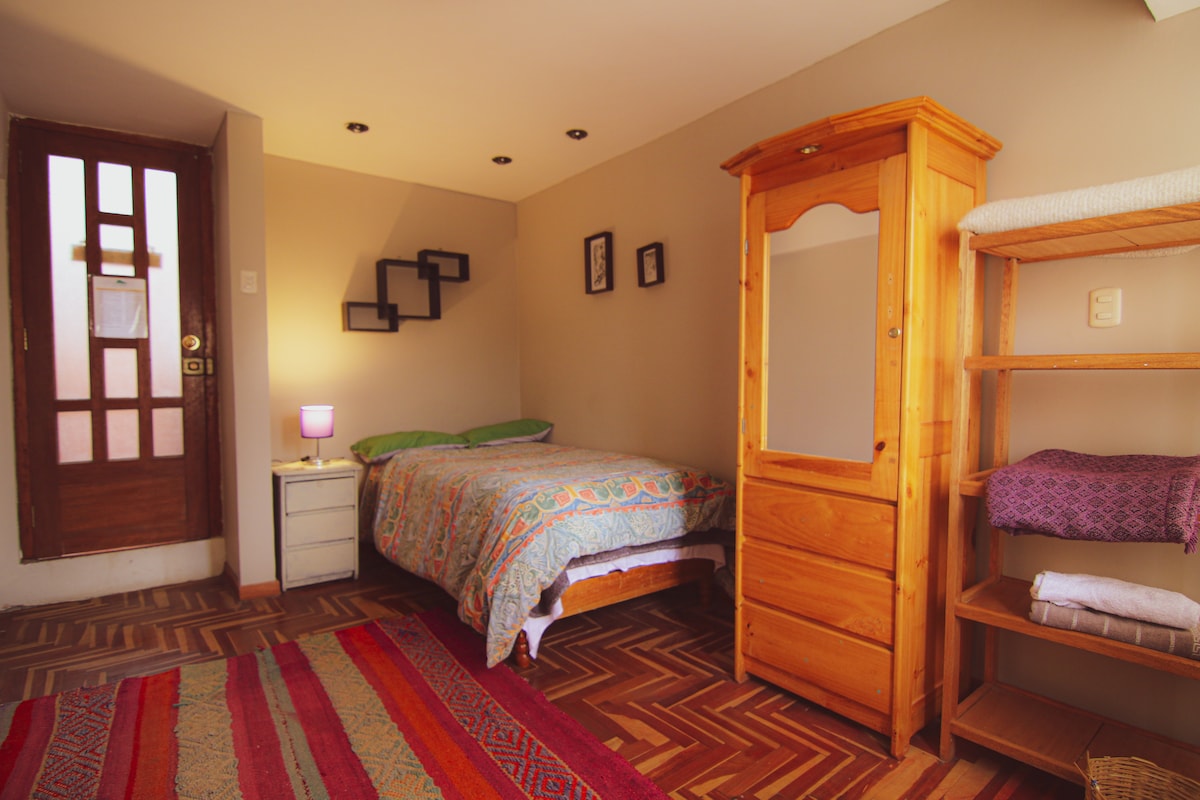 La habitación es grande, cómoda y acogedora con buena iluminacion. esta ubicada a 20 minutos caminando y 5 minutos en auto o transporte publico de la Plaza principal del Cusco, esta cerca de varias tiendas y restaurantes de todo tipo.