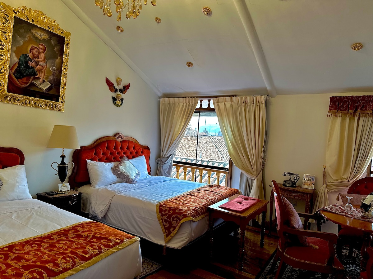 Hermosa habitación en “CASA CRISTOBAL Siete Cuartones CASONA COLONIAL” Hotel Boutique, estamos a 2 cuadras de la plaza de armas, cerca de todo. La habitación cuenta con baño privado moderno con agua muy caliente las 24 horas (35 m2), internet de alta velocidad, Smart TV con Netflix y Disney +, atención las 24 horas, limpieza y cambio de toallas diaria. - Almacén de equipaje GRATUITO - NO INCLUYE DESAYUNO Lugar silencioso y tranquilo. Contamos con una cafetería EULALIO CAFE con una carta diversa.