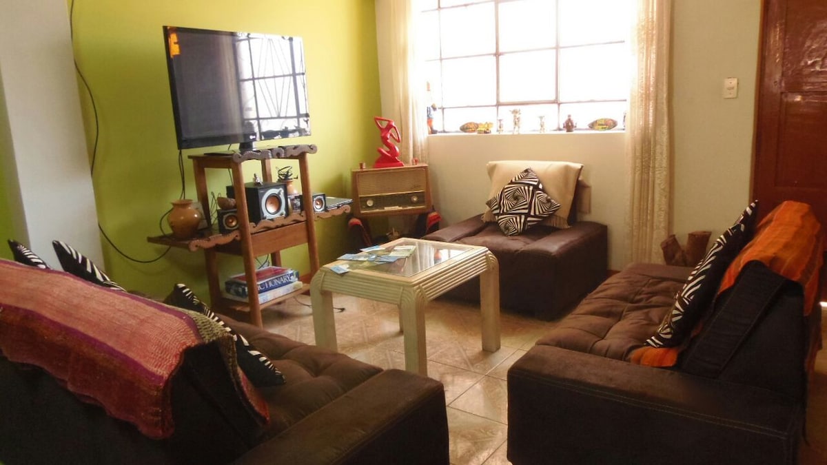 RunaHouse waits for you, it is close to the Velasco Astete airport and Real Plaza shopping center, supermarkets and a few minutes by car to the historical center of Cusco. RunaHouse has 3 rooms, a living room and a kitchen. RunaHouse , espera por ti , esta cerca al aeropuerto Velasco Astete , al Real Plaza, supermercados y del centro histórico del Cusco. RunaHouse cuenta con 3 habitaciones , una sala y una cocina.