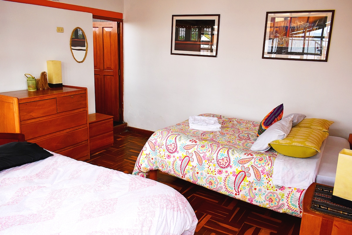 Aputambo is a private 3-bedroom duplex with panoramic views over Cusco. Located above the historic center, it offers a quiet place to rest with open views of the Andes. The space includes three bedrooms, three bathrooms, a full kitchen, and a terrace facing Ausangate. Fast WiFi, free parking, and easy access to San Blas make it ideal for families, groups, or travelers preparing for the Sacred Valley. Clear views of the valley, Ausangate, and main square.