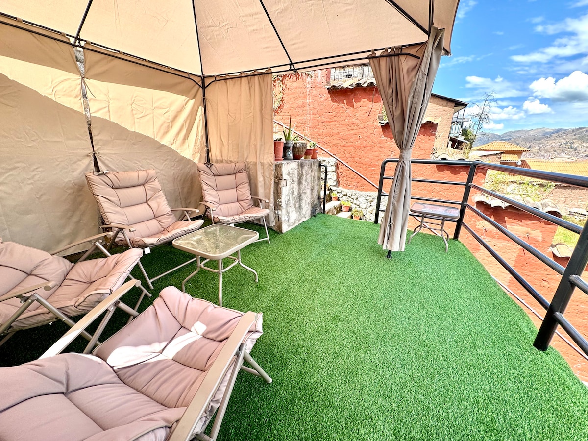 A tres cuadras de la plaza de Armas de Cusco, en el barrio tradicional de San Blas está el Mini departamento completamente privado y equipado con cocina, comedor,baño, dormitorio, chimenea, ventanal, neflix, wifi (fibra óptica) y una terraza en el jardín de la casa. Cuenta con servicios las 24 horas y goza de la paz del bosque localizado detrás del dormitorio principal. Forma parte de una casona tradicional de tipo colonial -Casita Azul-de adobe, paredes blancas con puertas y balcones azules