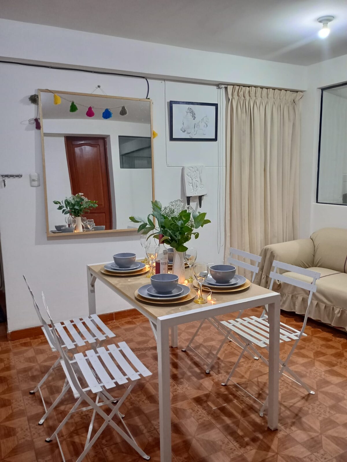 La urbanización magisterial es una de las mejores zonas de Cusco, muy segura, se tiene a disponibilidad todo el departamento con cama de dos plazas comoda y ropero. The magisterial urbanization is one of the best areas of Cusco, very safe, all apartment with 2 bathrooms and a large bed with closets, very comfortable.