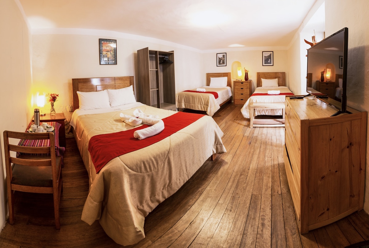 We are located in the heart of this beautiful city, close to restaurants, coffees, shops, spas our hotel is the perfect point to explore Cusco Private & Comfortable Rooms Each room includes: • Private bathroom • Towels and personal hygiene products • 24/7 hot water • Free WiFi • Daily housekeeping • 24-hour front desk