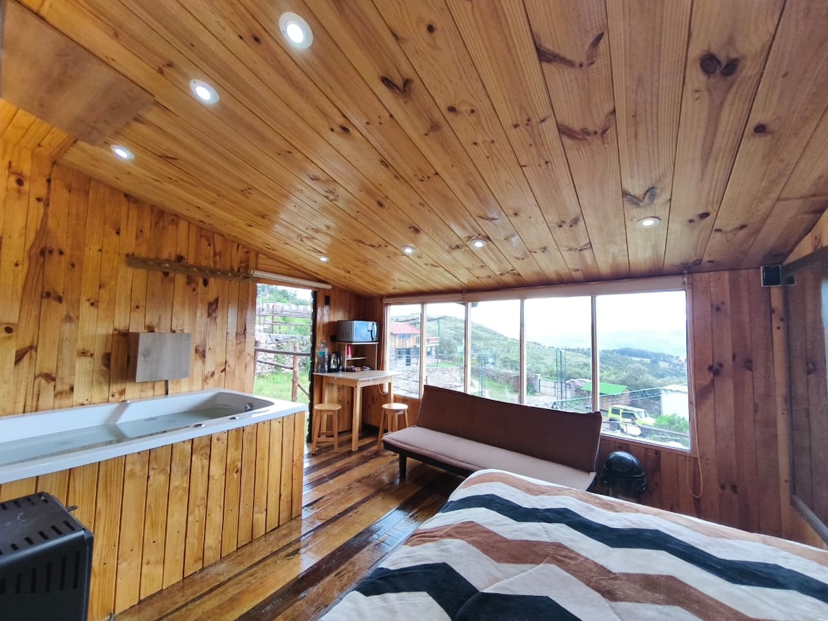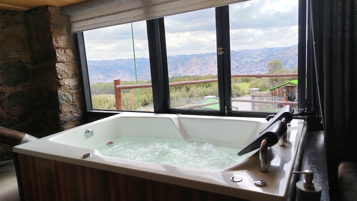 Experience natural luxury in our cabin with a private hot tub overlooking the city. Warm woods and modern design create a serene retreat where you can soak under the stars and feel the quiet beauty of the Andes. Built on sacred Inca land once home to the lineage of Inca Manco Cápac, this peaceful hideaway lies just a 10-minute walk from Sacsayhuamán and Plaza de Armas. We recycle and compost, honoring the spirit of this place where rituals once thanked the Earth for its abundance.
