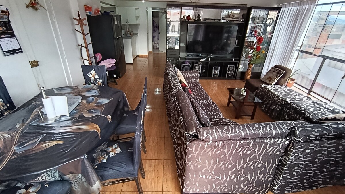 Disfruta de un espacioso y tranquilo departamento en el corazón de Cusco, perfecto para familias o grupo de amigos. Con una vista panorámica espectacular, este acogedor espacio esta equipado con todas las comodidades para cocinar y relajarte. A pocos minutos de los principales atractivos en la ciudad, cuenta con fácil acceso al transporte y todas las facilidades para tu estancia sea cómoda y memorable.