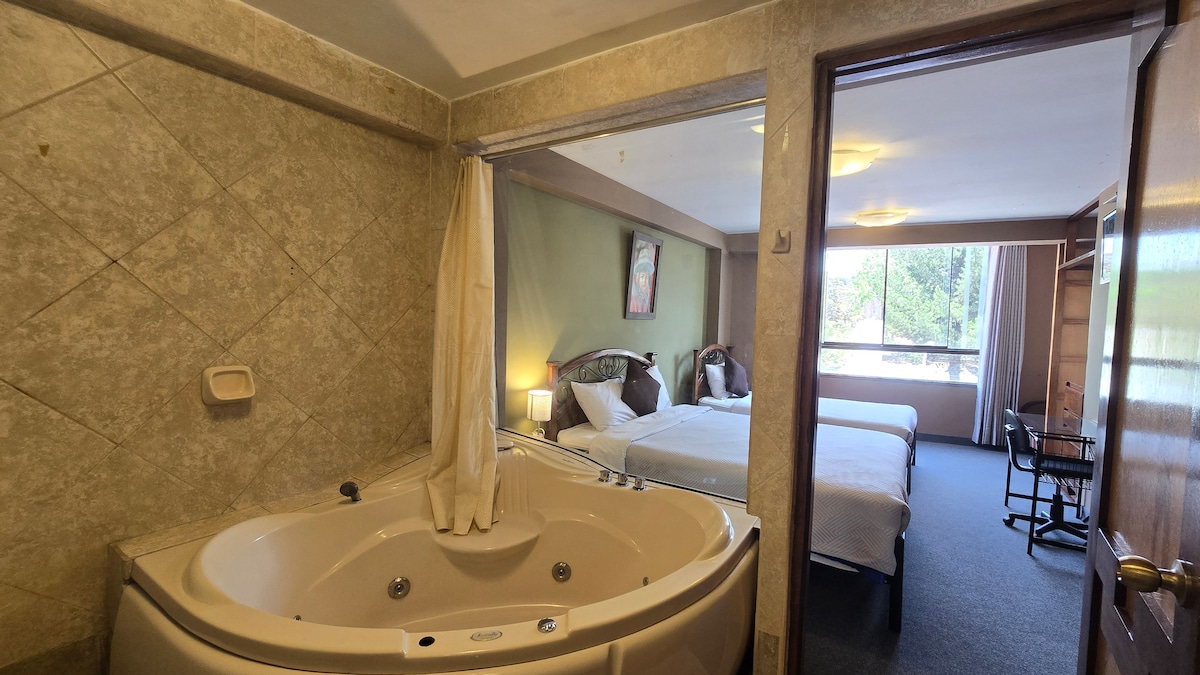 ¡Acogedora habitación Suite con Hidromasaje de Quechua Hotel Cusco! Equipada con Una Cama Matrimonial, Disfruta del lujo y la comodidad, relájate con tu propia sesión de Hidromasaje. Comodidades modernas y detalles tradicionales, TV cable, WiFi gratis, una hervidor eléctrico para tu café o té. Refréscate bajo la ducha, utiliza nuestro secador de cabello y disfruta de nuestros amenities de baño. Mantente cálido con nuestra calefacción y organiza tus pertenencias en el amplio armario.