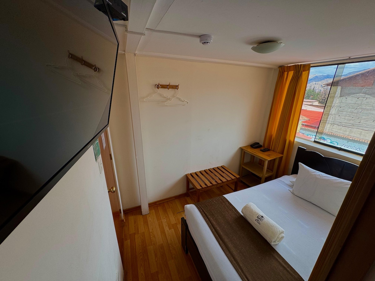 Room on the 3rd level of the hotel, has a double bed for 2 people and a private bathroom. Free breakfast. TATA Hotel is located 250 meters from the Plaza de Armas of Cusco, the safest and most touristic place in Peru. You can find around the hotel the best restaurants and coffee shops in the area, also a few meters away you have banks, pharmacies and markets available. We provide tourist services throughout the city. Enjoy your stay with us. We will wait for you!
