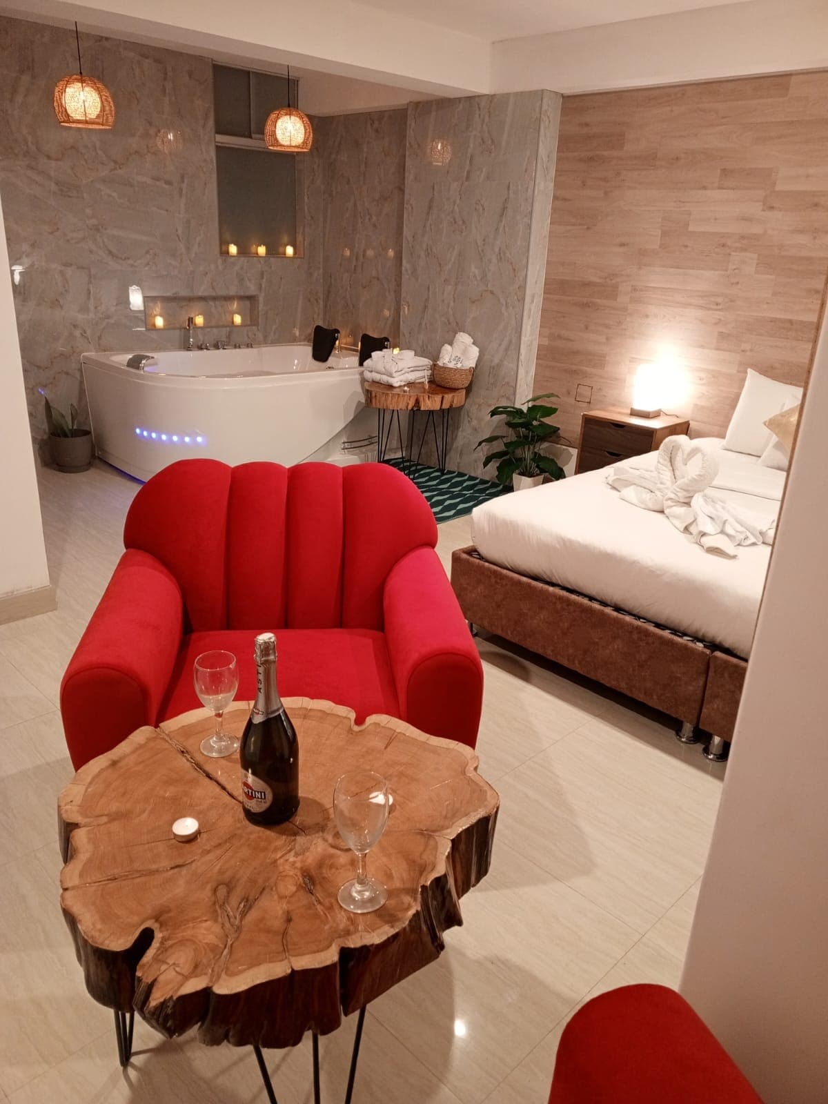 Confort supremo: cama acogedora, Wi-Fi veloz y baño de lujo. Un refugio sensorial donde el descanso es una experiencia. Amenidades exclusivas, espejo completo y un ambiente que invita a crear recuerdos inolvidables. ¡Tu escape perfecto te espera!