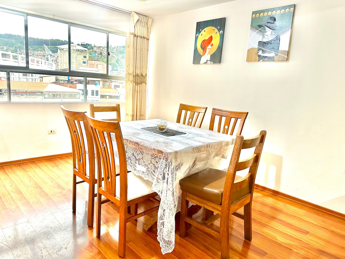 Apartamento Exclusivo en la ciudad del Cusco, ubicado en el barrio de Balconcillo a 15 minutos del centro de la ciudad y a 20 minutos desde el Aeropuerto en taxi. Cerca del Barrio de San Blas. Apartamento moderno y amplio con todas las comodidades Sala, Cocina, Comedor, 03 Habitaciones, 02 Baños, Lavanderia, completamente equipado con articulos de buena calidad; Vista Panorámica y hermoza de la Ciudad del Cusco; ideal para familias, grupo de amigos. Somos su mejor opción en el Cusco.