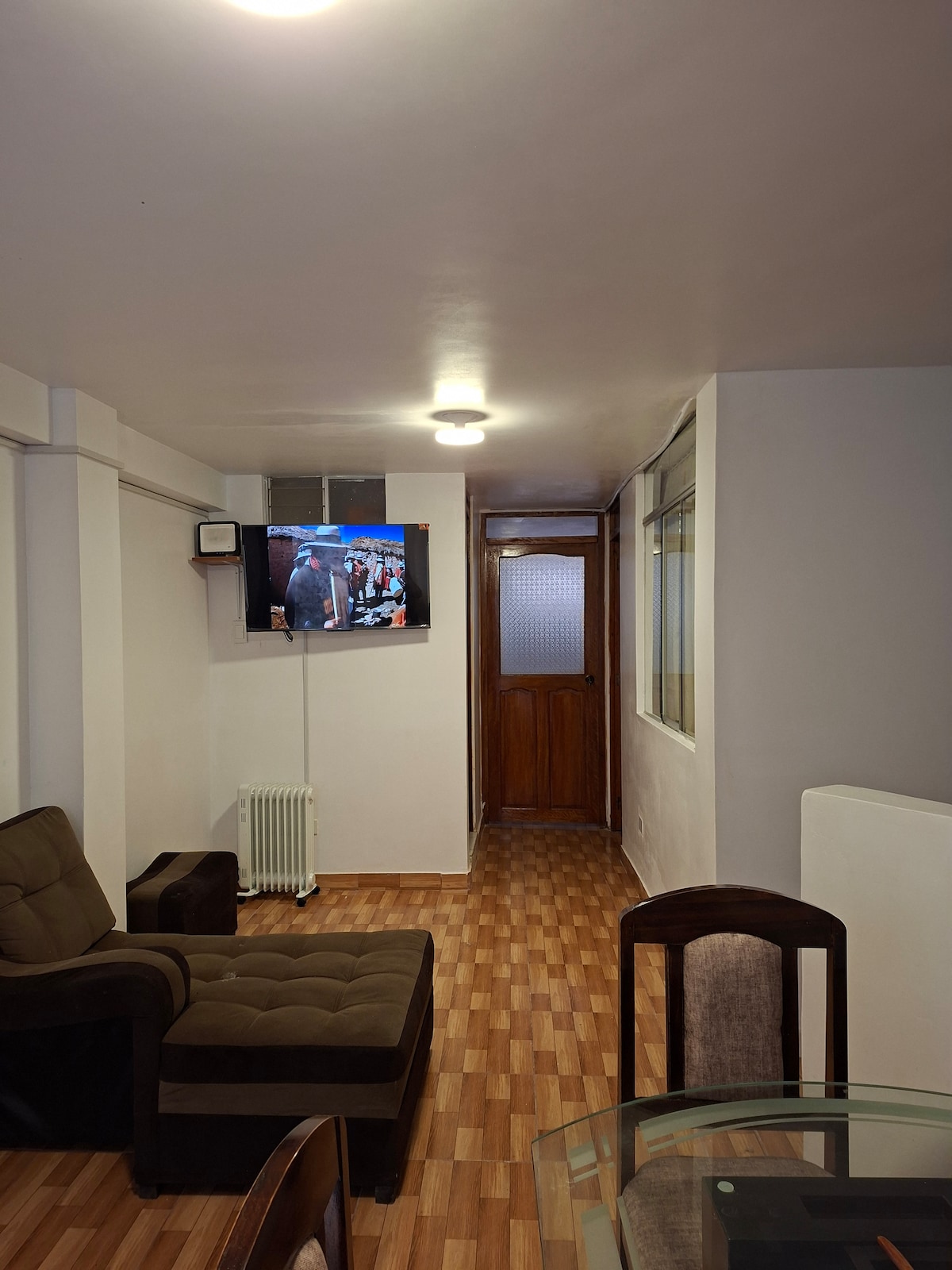Cozy and spacious apartment in Cusco with panoramic views. Ideal for up to 6 guests, it features 3 bedrooms with TV and heaters (optional), 2 full bathrooms, living room, dining area, fully equipped kitchen, laundry, and WiFi. Hot water 24/7. Located on the 5th floor (no elevator). Parking available. Just minutes from the historic center — perfect to enjoy Cusco in comfort and peace.