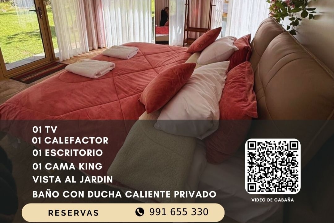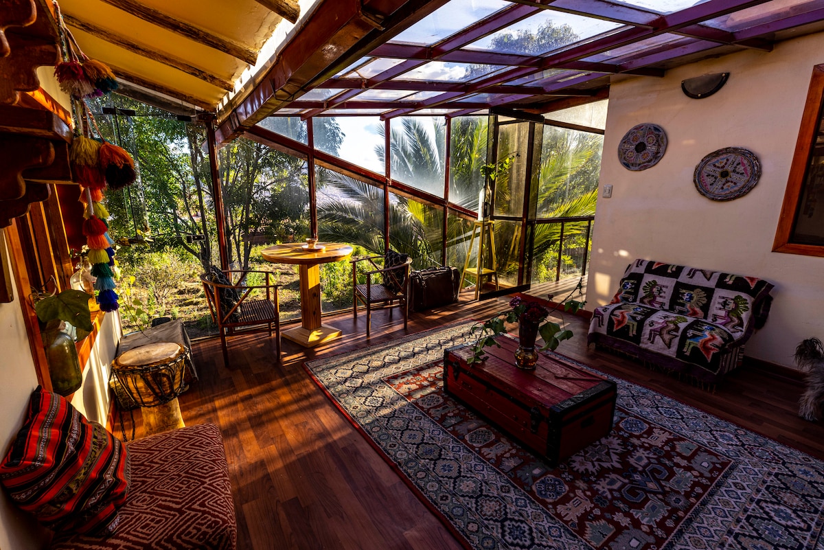 Cozy Getaway in Cusco city, Surrounded by Nature Enjoy the tranquility of a warm and bright cabin nestled among green gardens, just 20–30 minutes from Cusco’s historic center. Our villa is located in a safe and peaceful neighborhood, ideal for travelers who want to immerse themselves in the magic of our city and stay for an extended period of time. The guest space is a private chalet, decorated with great detail and care to highlight the rustic charm of the construction.
