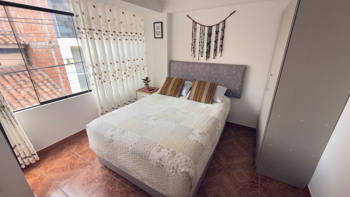 Departamento amplio y acogedor, con excelente vista y tranquilo, cerca a la plaza y diferentes miradores. Cuenta con baño privado, ducha caliente, sala espaciosa para reuniones o para pasar tiempo con familia o amigos con una cocina y un comedor, cuenta con dos habitaciones y 3 camas (una habitación matrimonial y la otra doble), con vista al Cusco. Ideal para pasarla con amigos o tu familia
