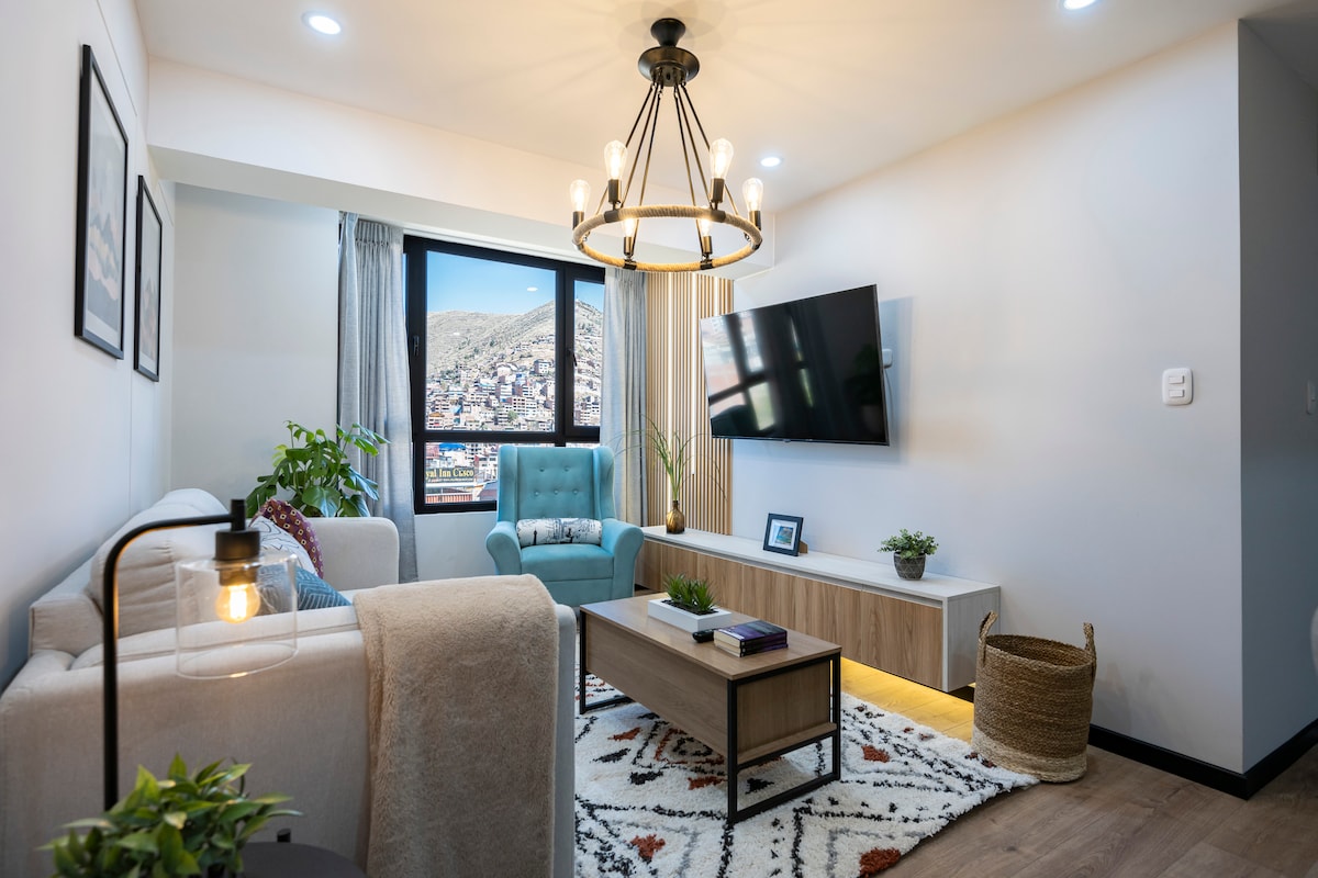 A fully furnished modern studio with all the comforts and privacy of home, whilst offering a panoramic view of the beautiful Cusco. The unit is fully-equipped with soundproof doors and windows, heavily-insulated walls for added warmth, blackout curtains, consistent gas-powered hot water, strong Wi-Fi and smart TV (Netflix included) to ensure a quality living experience. It takes only 10-15 minutes’ walk to the historic centre. The indoor heating system is also available at an additional cost.