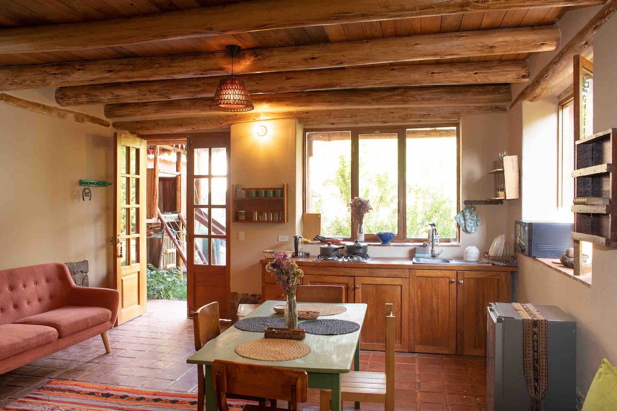 Kallpawasi, House of Energy Andean villa just 660 meters from the center of Urubamba, surrounded by a private garden. The villa invites you to experience the magic and serenity of nature, and the mystical spirit of the Sacred Valley of the Incas. A 33 minutes from Maras, Moray, Chinchero, and Ollantaytambo (train station to Machu Picchu), and 1 hour from Cusco. Need transportation, meals, tours, or personalized experiences? Write to us, we’ll be happy to help make your stay unforgettable.