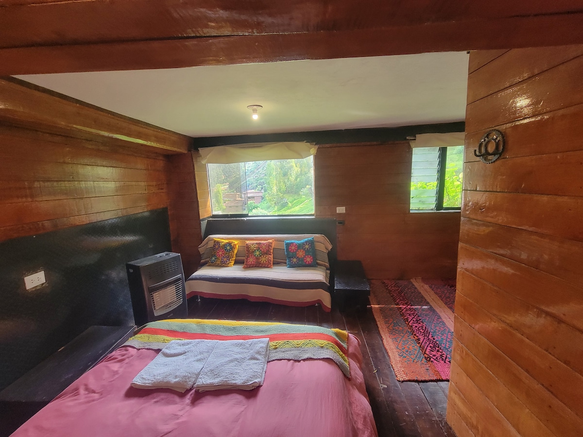 Casa con diseño único en Rinconada, Pisac a 2km del pueblo. Espacio ideal para vivir tranquilo, disfrutando de la naturaleza y las bellas vistas de la montaña y el complejo arqueológico de Pisac. La casa es ideal para una pareja, tiene un dormitorio bien iluminado y con un ecran y proyector, amplio balcón, una cocina equipada con todo, baño completo y una sala con televisión y roku. La casa está rodeada de campo y cuenta con espacio para estacionamiento y jardín delantero.
