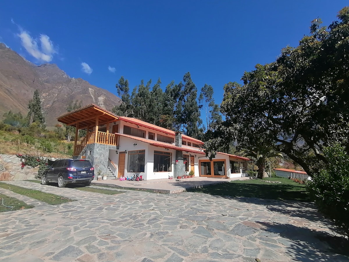 Casa con diseño único en Rinconada, Pisac a 2km del pueblo. Espacio ideal para vivir tranquilo, disfrutando de la naturaleza y las bellas vistas de la montaña y el complejo arqueológico de Pisac. La casa es ideal para una pareja, tiene un dormitorio bien iluminado y con un ecran y proyector, amplio balcón, una cocina equipada con todo, baño completo y una sala con televisión y roku. La casa está rodeada de campo y cuenta con espacio para estacionamiento y jardín delantero.