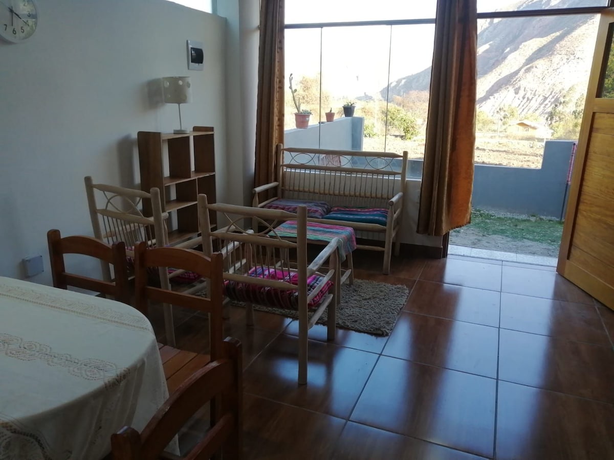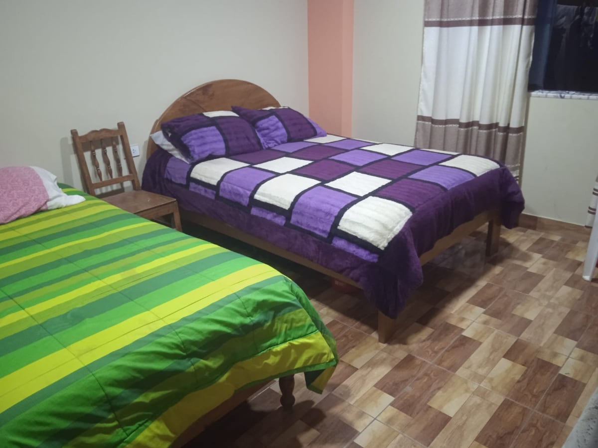 Relájate con toda la familia en este tranquilo lugar para quedarse. Ideal para parejas, viajes entre amigos. Nuestra casita cuenta con 01 habitaciones con baño privado y 02 habitaciones con en común, sala comedor y cocina equipada. Ofrecemos internet, cable directv, servico de agua y luz. Tambien contamos con un estacionamiento. Te envitamos a disfrutas de una hermosa vista a las montañas.