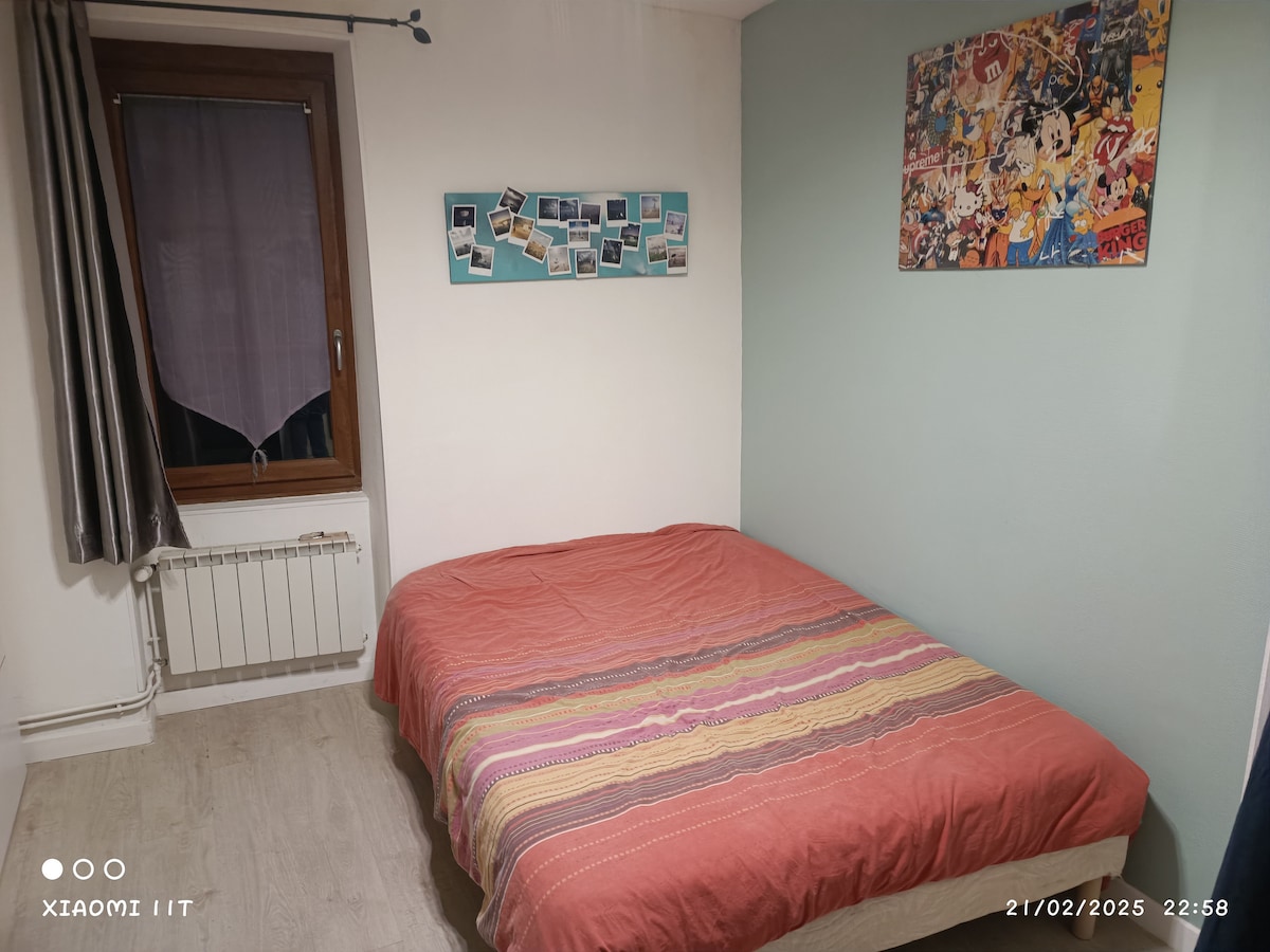 Welcome to our charming home in the historic district of Cusset! - Warm, pleasant interiors spread across three cozy levels. - Spacious kitchen and living room with a wood stove for relaxed gatherings. - Accommodates up to 8 travelers with 3 bedrooms and 2 bathrooms. - Fully equipped kitchen, washing machine, dryer, and high-speed WiFi. - Nearby lively shops, cultural sites, and a weekly street market. - Self check-in with a key box for flexibility.