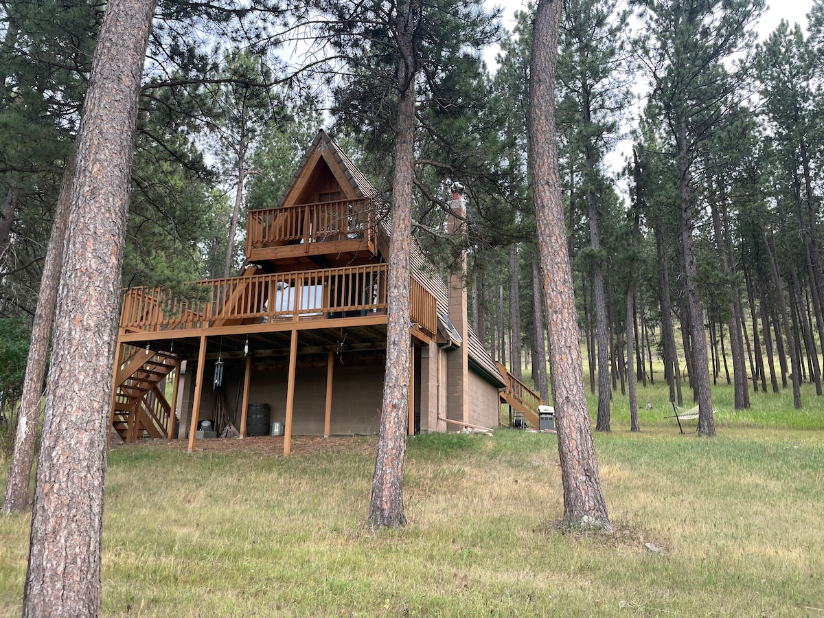 Find solace in nature's embrace just six miles away from Rapid City. Centrally located in the Black Hills National Forest, surrounded by the beauty of nature and popular attractions. This rustic chalet cabin features 3-levels and is nestled in the pines on two acres, surrounded by only forest services to the back of the cabin. Hike or ski directly from the property to Buzzards Roost or beyond! Sit back and relax on one of the the two large desks on either the front and back of the cabin.