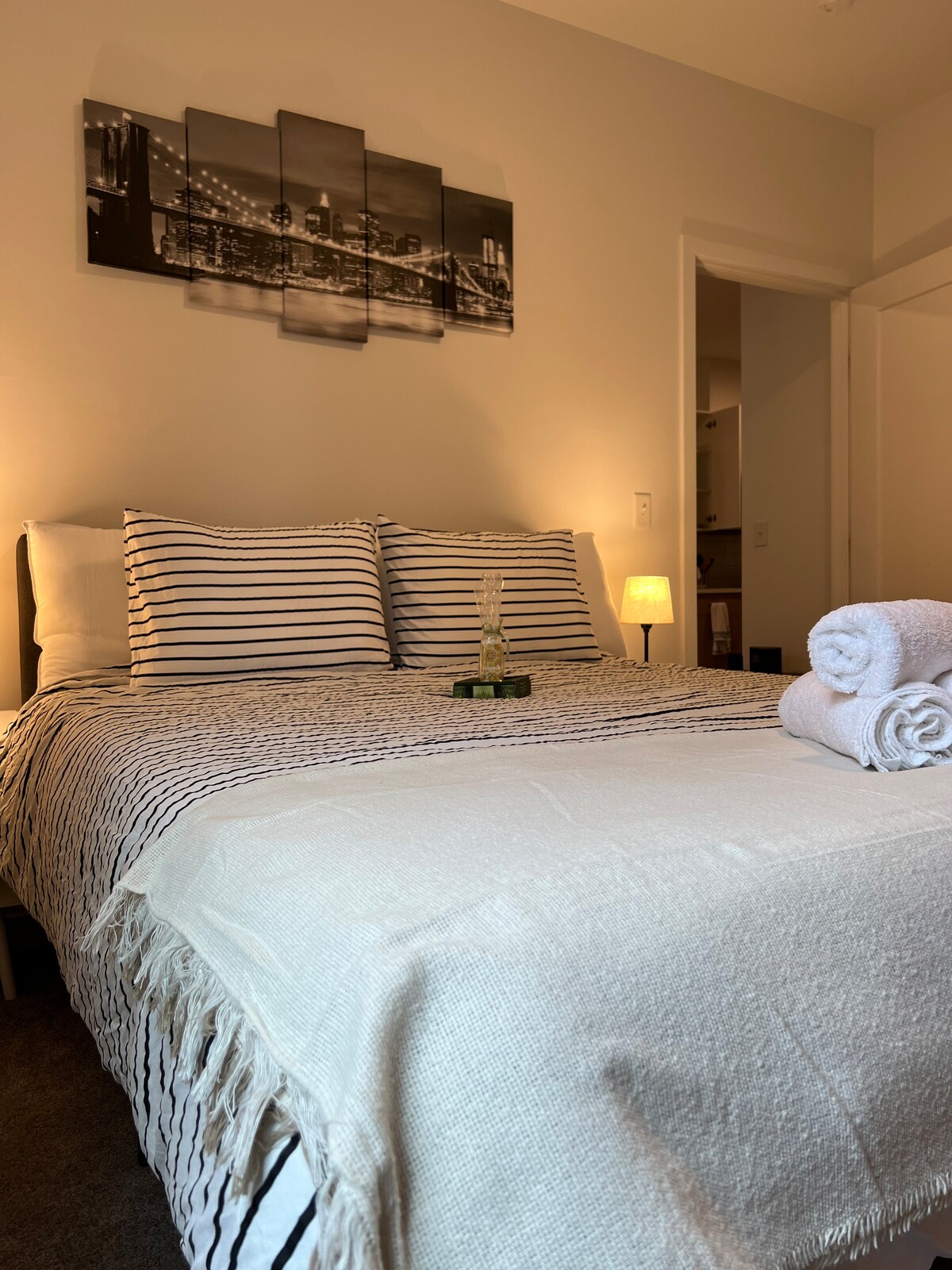 Come and stay at this luxury, modern one-bedroom apartment just steps away from Yale! With Broadway just around the corner and some of New Haven’s best Pizza a stone’s throw away you’d be hard-pressed to find a better location for your stay. Enjoy cooking up a nice dinner at home one night using the fully-equipped kitchen provided. Spend the evening on the rooftop terrace watching the sunset over the city skyline before tucking in for the night. Use the downstairs gym for a morning workout.
