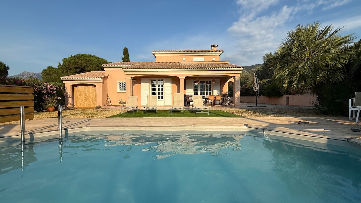 Villa de standing d'une superficie de 75m2, bâtie au coeur d'un jardin clôturé de 600m2 avec une vue panoramique sur les montagnes et sur le golfe ajaccien disposant d'un Spa privatif disponible toute l’année et chauffé. Entièrement équipée et domotisée, la villa est composée de 2 grandes Chambres possédant chacune son espace Salle de Bain (douche + baignoire), ainsi que d'un WC indépendant. Lits faits à l’arrivée et linge de bain / produits d’hygiène fournis.