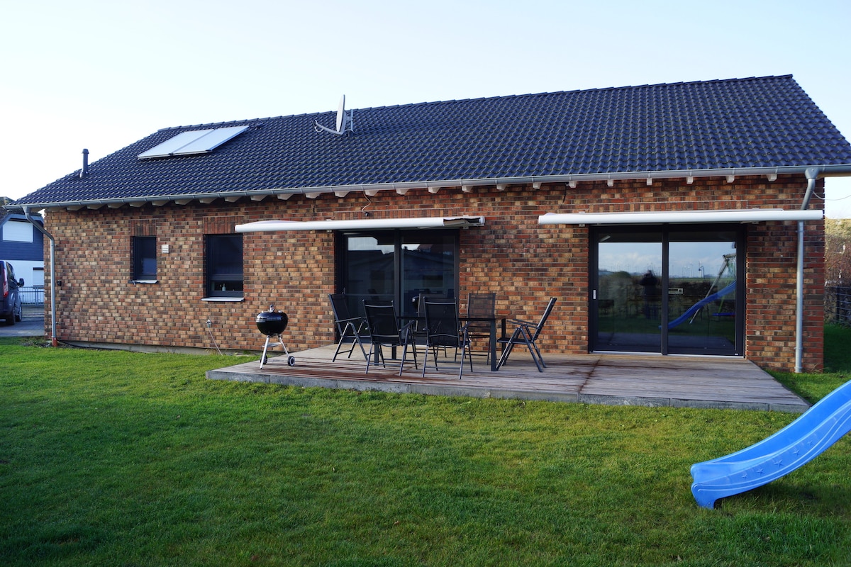 meerglück cux - Ferienhaus im Reiterdorf an der Nordsee. In unmittelbarer Nähe zur Cuxhavener Küstenheide, direkt zwischen Geest und dem Wattenmeer, befindet sich dieses hochwertig und mit besonderen Highlights eingerichtete Ferienhaus. Das schicke Fachwerkhaus mit großer Terrasse und dem ringsum eingefriedeten Garten, bietet bis zu 6 Personen, nebst Freund Fellnase (max. 2), ganzjährig optimale Bedingungen für eine entspannte Auszeit. Die insgesamt drei Schlafzimmern sind supergemütlich