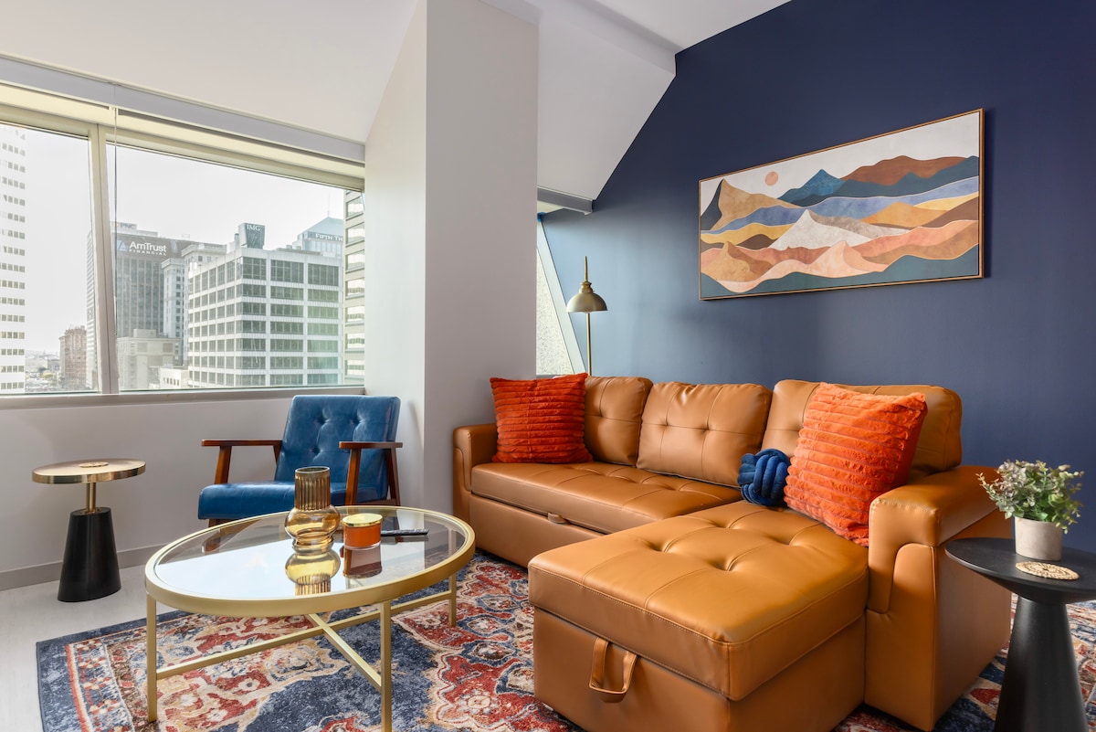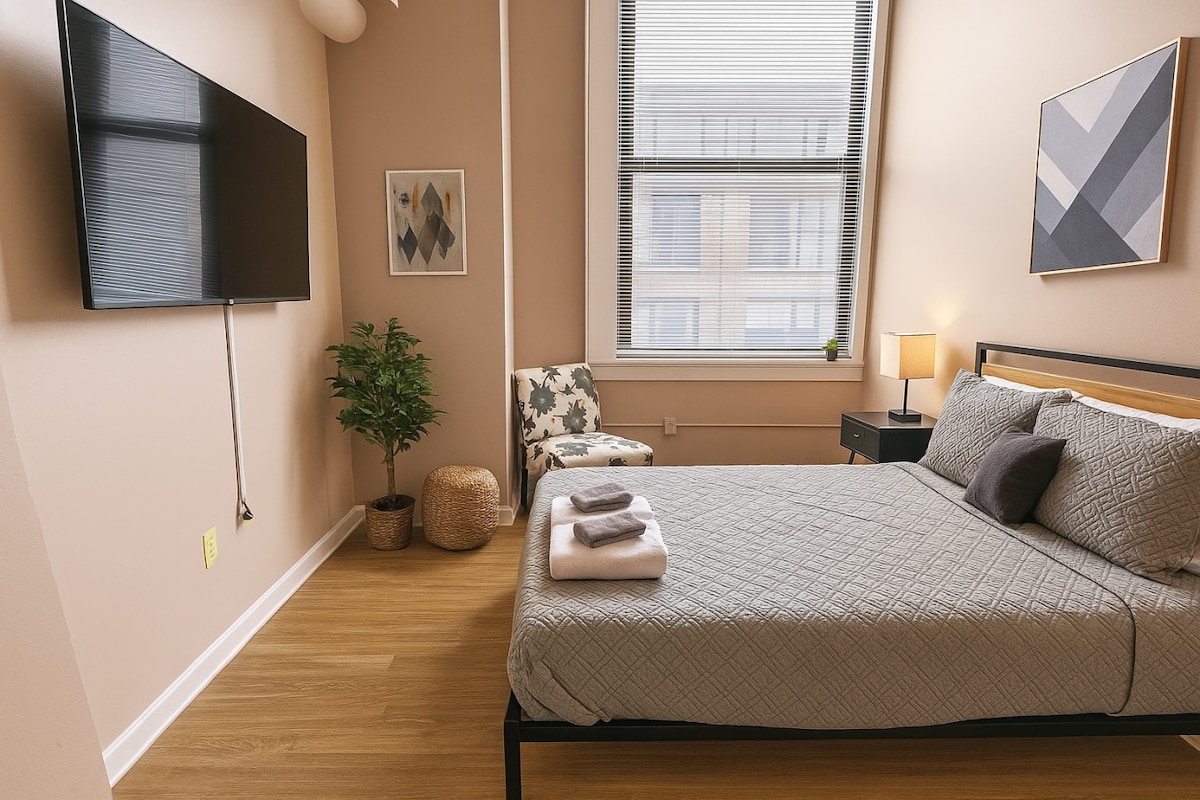 Welcome to your Home in Cleveland! Located in a historic building in the heart of downtown, you’ll feel the city's charm while having all the modern amenities you need. ➹ Spacious Downtown Loft ➹ FAST 100mb Wi-Fi for work or streaming ➹ 24/7 Gym with sauna and tanning bed ➹ Memory foam beds for a great night's sleep ➹ Smart TVs for your favorite shows ➹ Fully stocked kitchen We genuinely LOVE hosting and want your stay in Cleveland to be amazing — reach out with any questions!