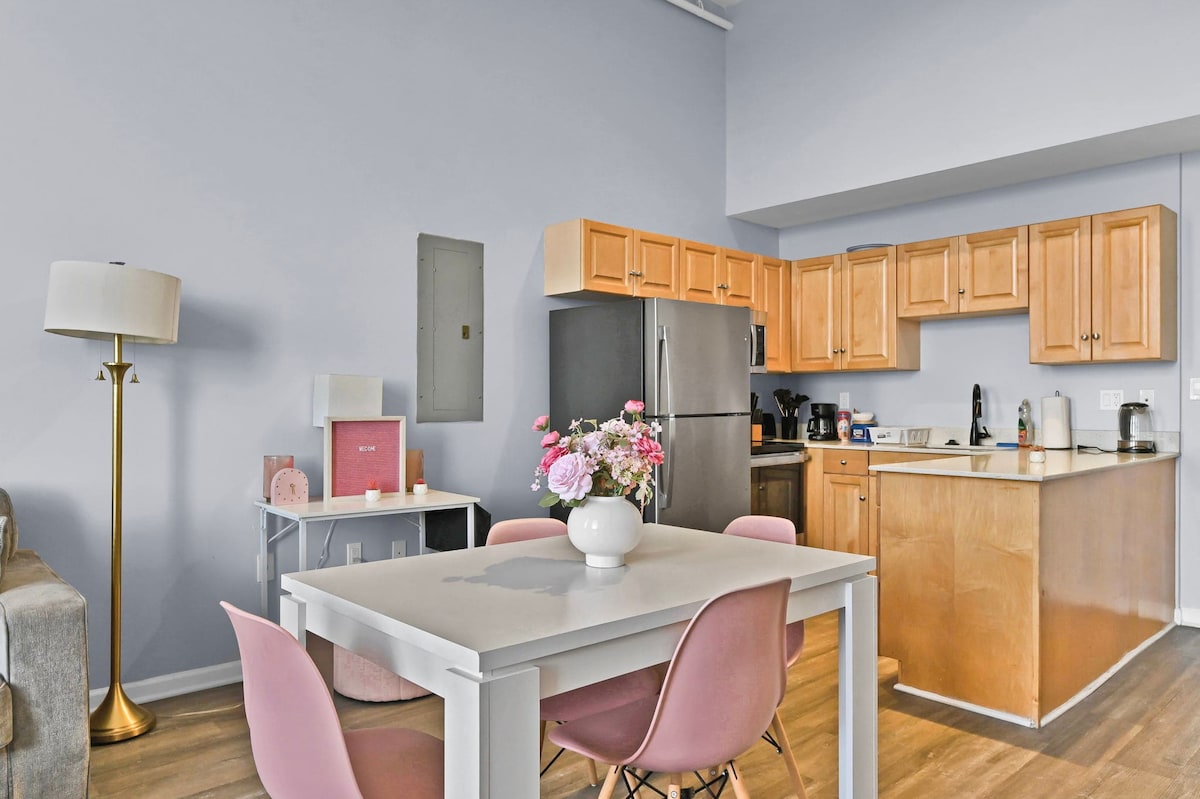 You can stop your search now. You just found the perfect place to book for your trip to Cleveland. ➹ Clean. Robust Amenities. Modern Finishes. Quick Host Responses. ➹ You're going to be located at the CENTER of everything in Downtown Cleveland. ➹ Get a good night's sleep with our memory foam beds. ➹ Spend your daytime working from home at our private home office. Cook a meal for your group in our beautiful, timeless kitchen. Then spend your evenings relaxing with our 65" Smart TV.