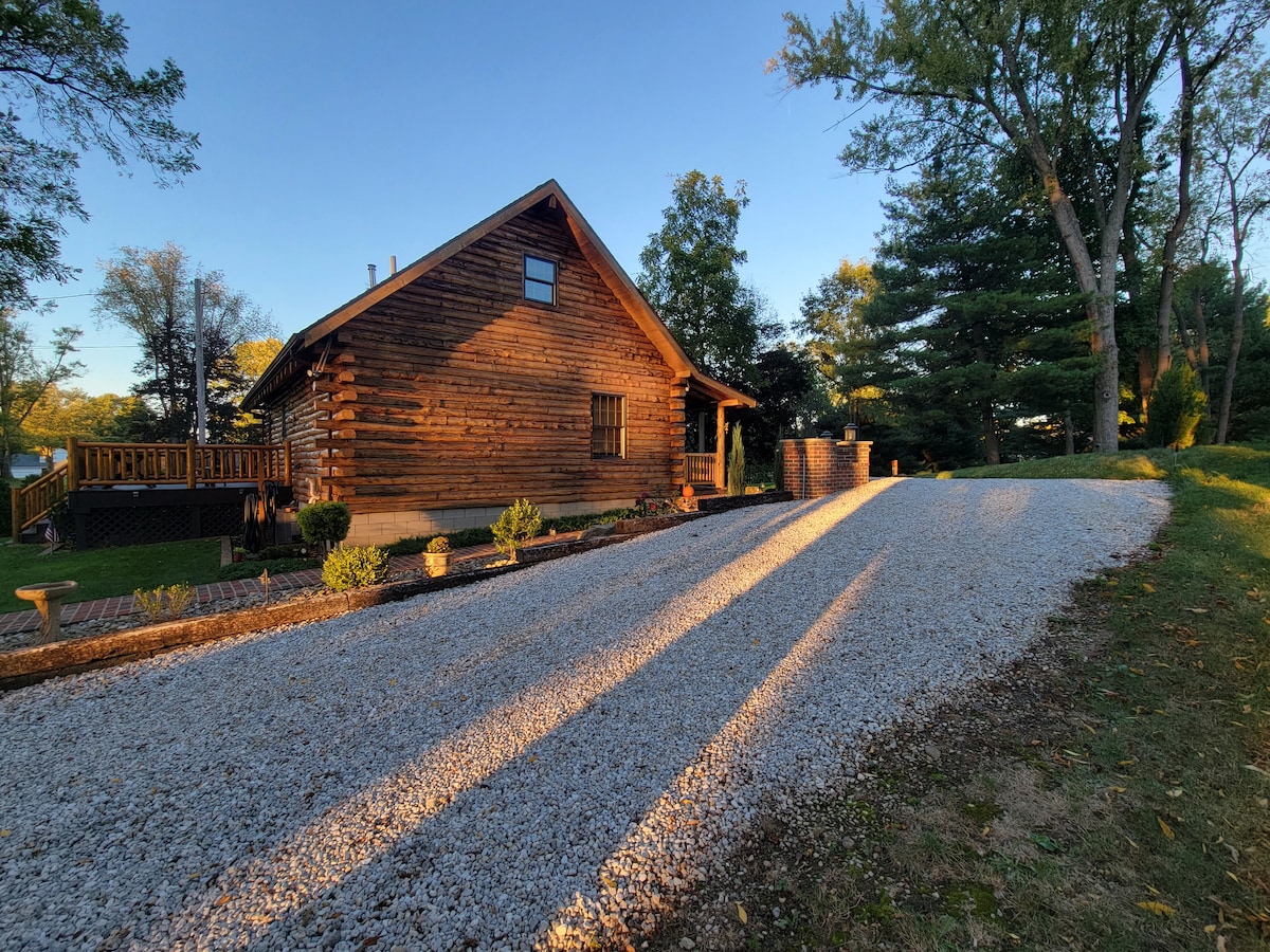 Romantic getaway log cabin in the country. Private log cabin with full kitchen and large bathroom and large shower. This cabin was built summer 2016 and we are continuing to landscape and make it a great place to have a romantic getaway or a place to relax and get away from the city. Free WiFi, Hot tub that seats 7, Fire pit area and charcoal grill on back patio, are some of the great features we have to offer! NOW OFFERING EBIKE RENTALS SO ASK ME ABOUT THEM IF INTERESTED!