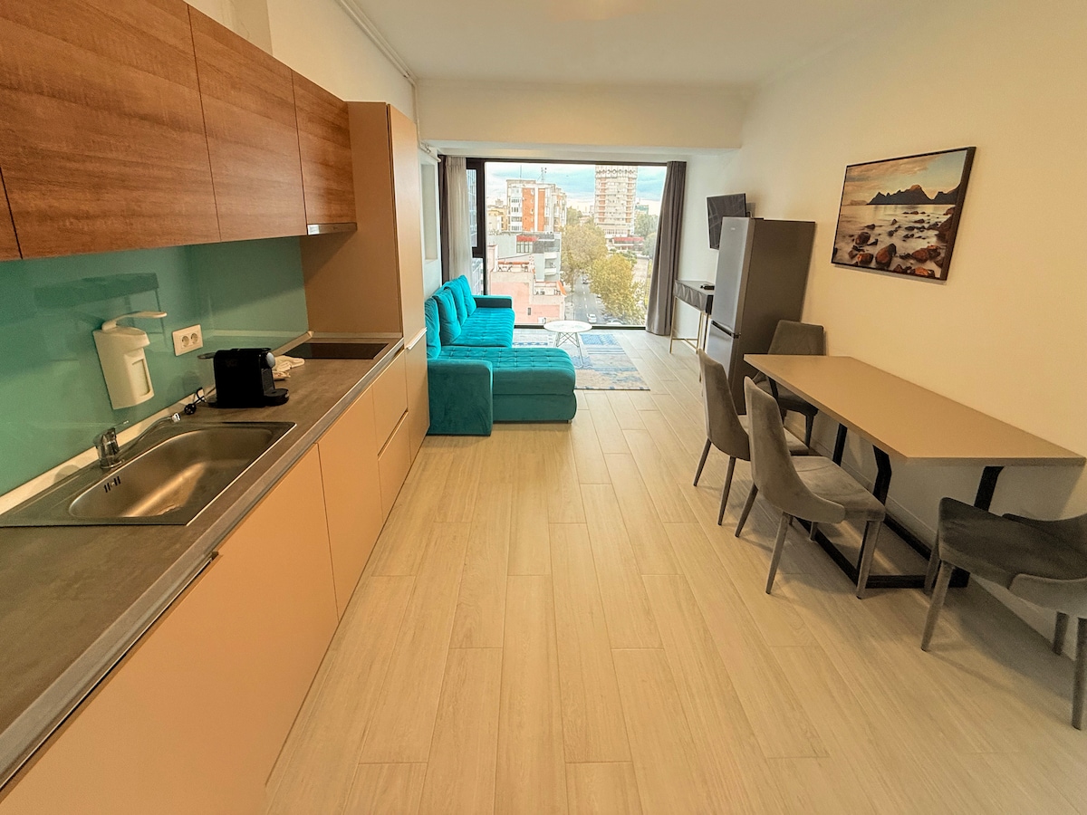 RO "Om liber, tu vei iubi intotdeauna marea" Te invitam in noul studio cu vedere spectaculoasa la mare. Situat intr-o zona turistica cu numeroase restaurante si beach-baruri, dorim sa ai parte de o vacanta de neuitat! ENG "Free man, you will always cherish the sea" We welcome you to the new studio with spectacular sea views.Located in a touristy area with many restaurants and beach bars, we want you to have an unforgettable vacation!