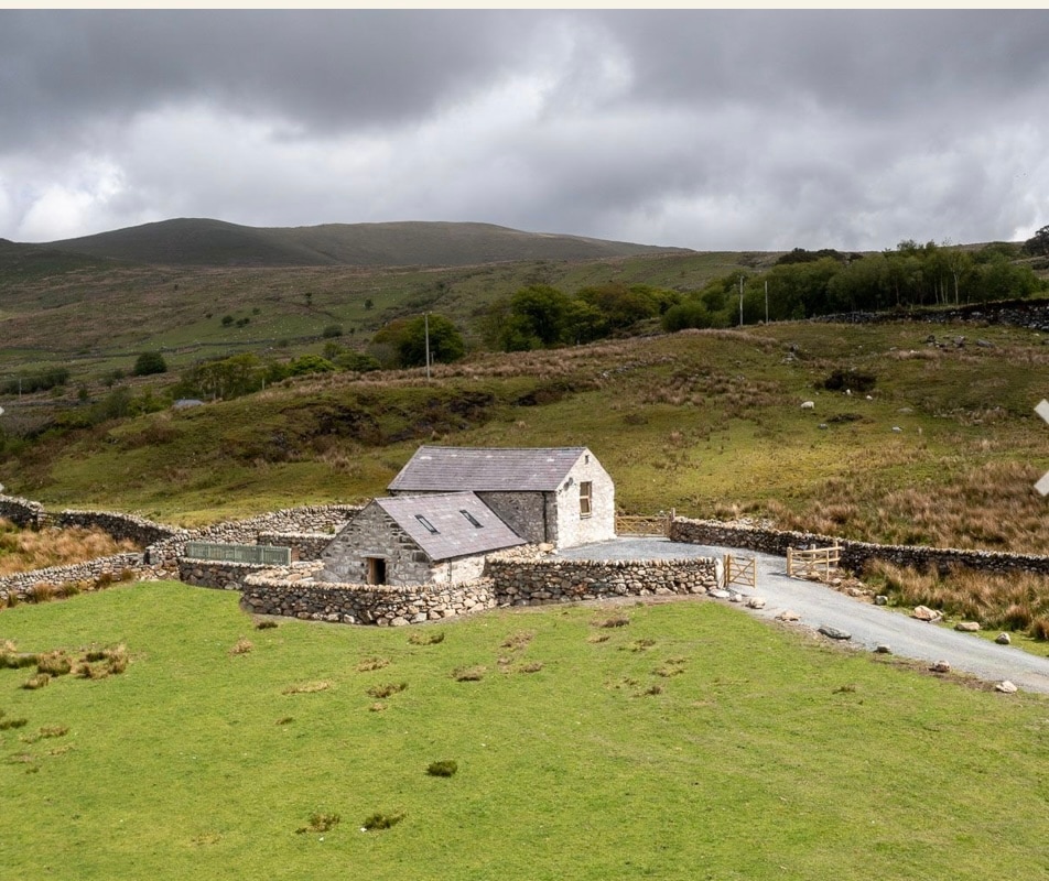 Cosy, restored self-catering barn with a log burner. The barn is Grade 2 listed and retains the original 17th century wooden beams. Situated only 7 minute drive from the Rhyd Ddu Snowdon path. Located on a secluded working mountain farm, overlooking the famous village of Beddgelert, just a 10 minute walk down through the fields and ancient oak woodland. From the patio enjoy the magnificent views of the Eryri mountains. The perfect location for hikers with walks from the doorstep.