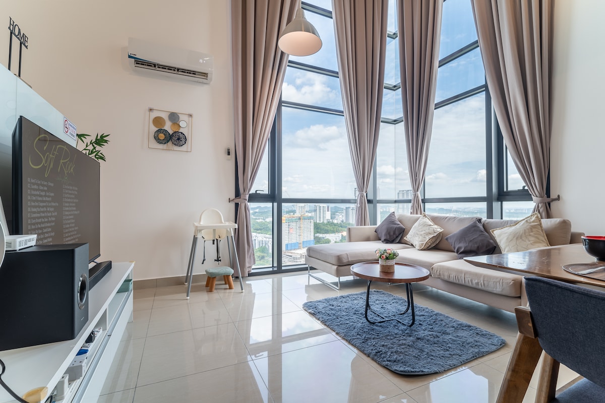 FREE COMPLIMENTARY PARKING An exclusive and chic homestay designed and built personally from the ground up will truly excite the senses for those who are travelling to Cyberjaya. Located in a limited corner unit with a large balcony and mesmerizing views. The unit comes exclusively with 100mbps 5G wifi and a dedicated Netflix account to cater for those who come to work and relax.