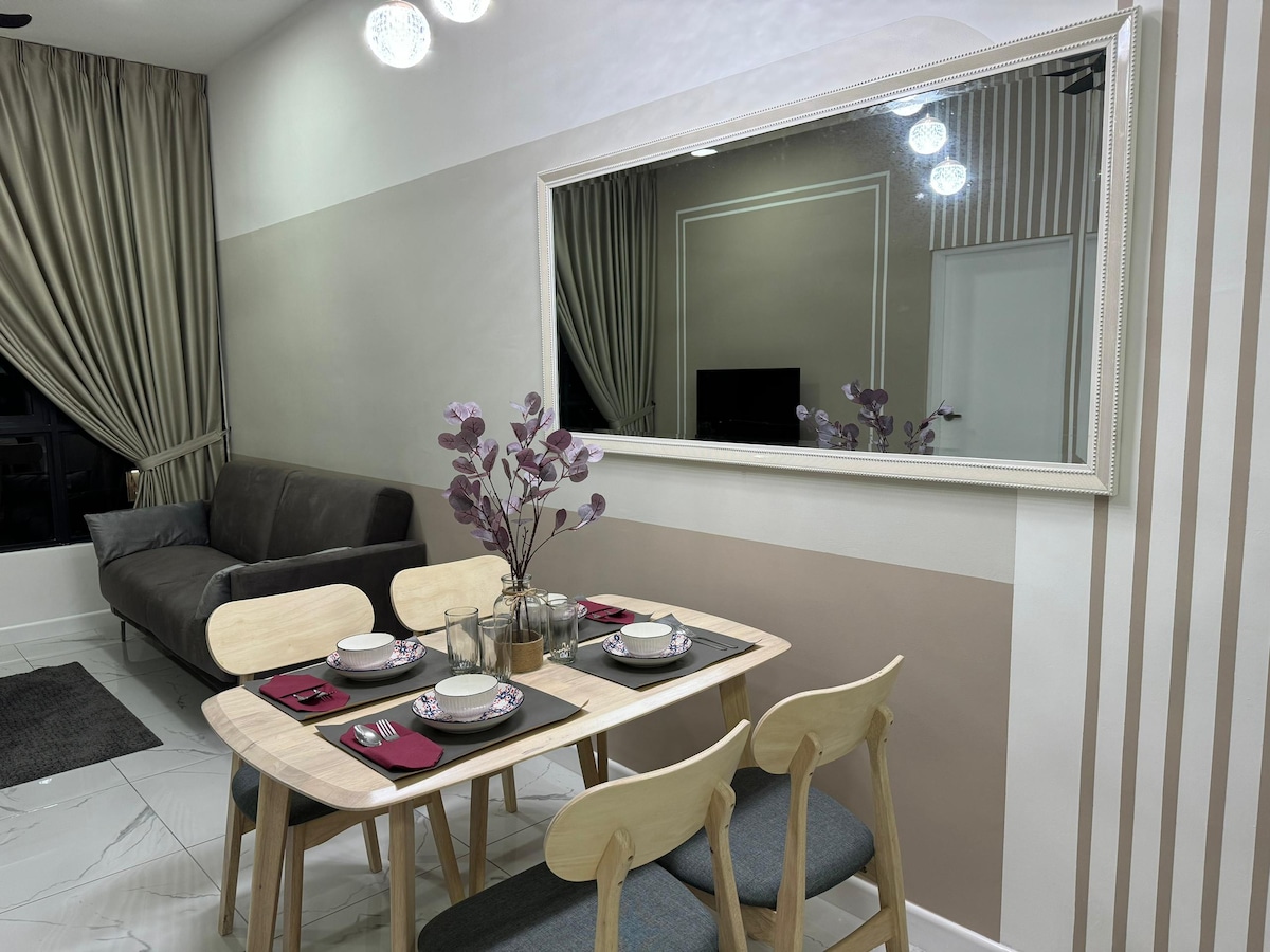 FREE COMPLIMENTARY PARKING An exclusive and chic homestay designed and built personally from the ground up will truly excite the senses for those who are travelling to Cyberjaya. Located in a limited corner unit with a large balcony and mesmerizing views. The unit comes exclusively with 100mbps 5G wifi and a dedicated Netflix account to cater for those who come to work and relax.