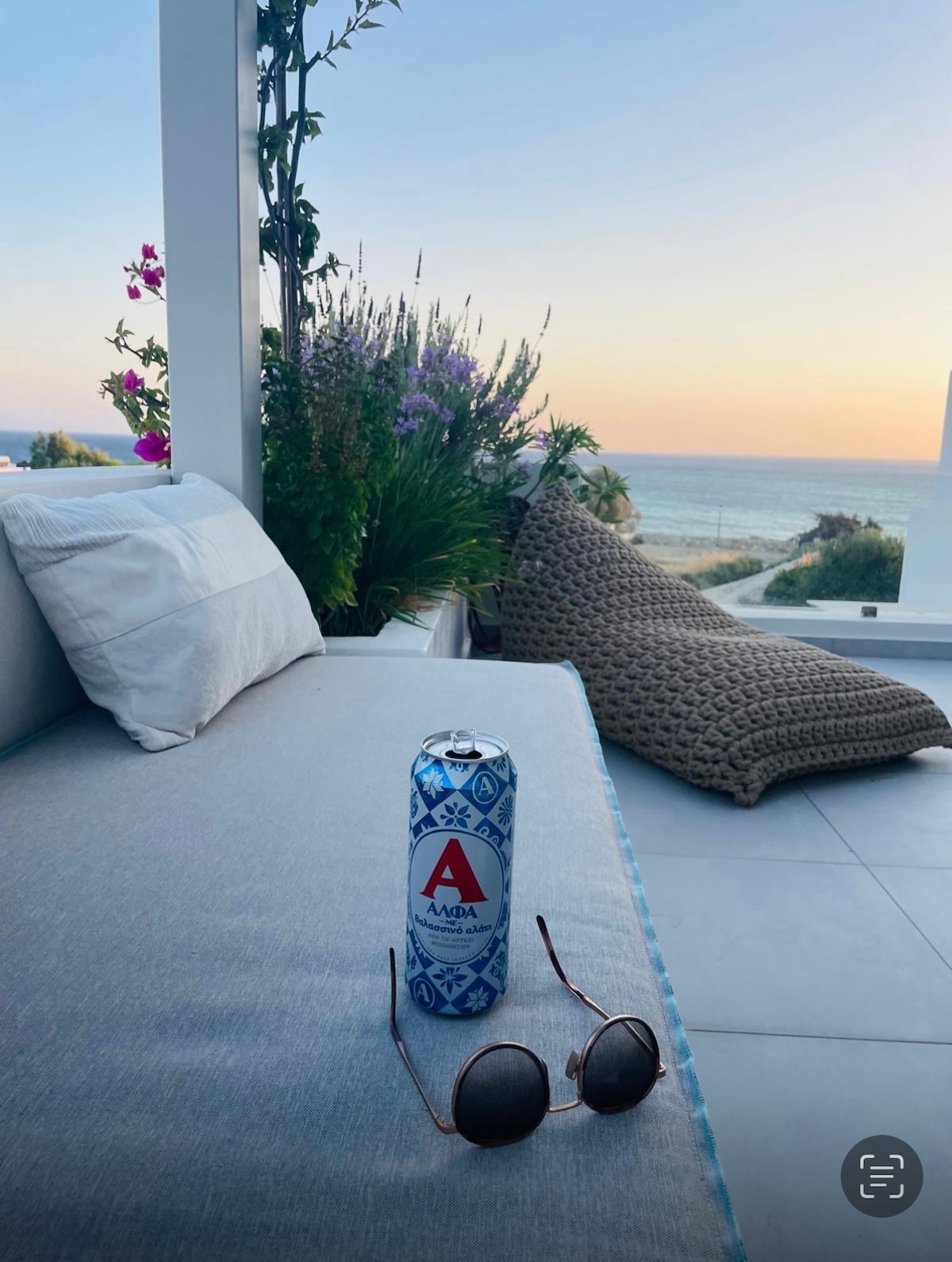 Nestled in a serene, luscious garden, the Residence of renowned painter Nikos Nikolaou has been transformed into an oasis, with six independent studios, decorated with works of the painter. It is ideal for couples, families or larger groups that can stay in multiple studios. Studio Daphne, on the upper level, with spectacular sea views form the large terrace and elegant 2-room interior featuring custom-designed furnishings, inspired by Nikolaou’s heritage, can accommodate a family of 5 people.