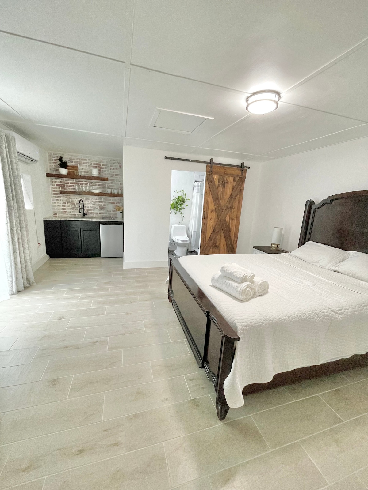 Our cozy tiny house is perfect for when less is more :-). An intimate space for a long reflective weekend or a more affordable option for a few days with the kids at nearby Legoland. Offering a queen-size Murphy bed and two additional single-size bunk beds, the Cypress Inlet Tiny House can comfortably accommodate up to four people. Equipped with a mini-fridge, a microwave, and a Keurig duo (drip & pod) coffee maker.