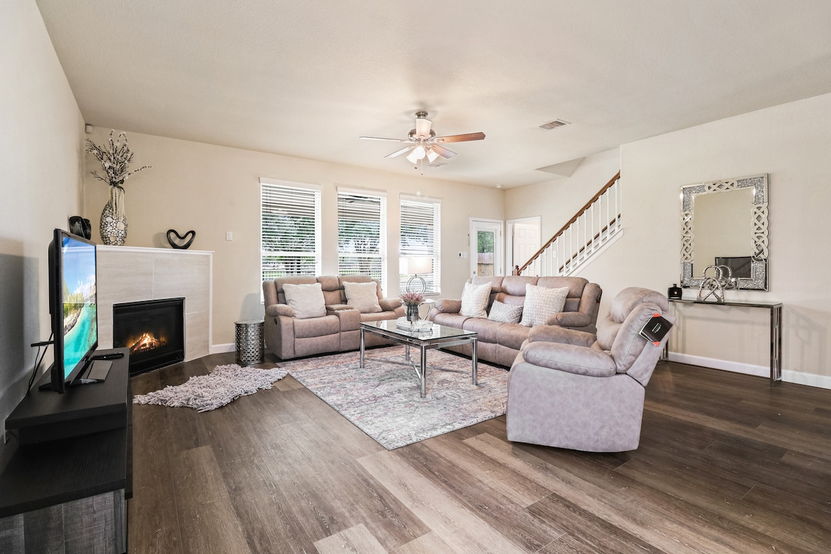 Tropical Oasis – A waterfront Retreat | KATY, TX Wake up to peaceful water views and unwind in a space designed for relaxation and comfort. Just minutes from Typhoon Texas, Andretti, Cinemark, Katy Mills Mall, and LaCenterra. Foodies will love the diverse dining options nearby, including Asian Town, and everyday essentials are just around the corner with HEB supermarket. Tropical Oasis is the perfect place to stay for families, couples, or business travelers who love being by the water.