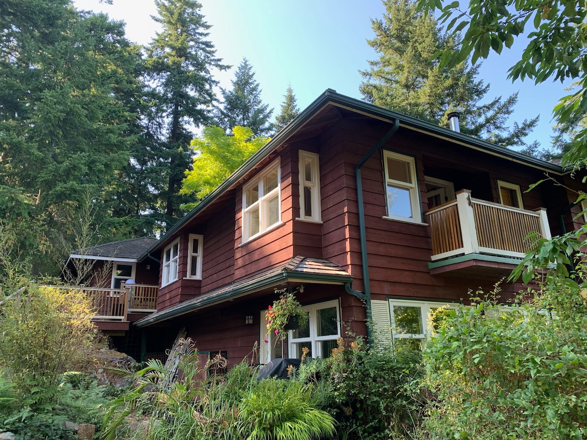 Welcome to our Hillside Oasis! Enjoy your own private spacious coach house with an unbelievable view. One bedroom, one bathroom, hotplate, toaster oven, fridge, pull-out couch, living room, cute little wood burning stove. 5 minute drive to the cove/ferry terminal. Relax on your private patio after a day of hiking, visiting the lakes or beaches, or shopping in the cove. Wifi TV w/Firestick. Queen bed. Note we are a 45 min walk uphill from the ferry. We recommend you bring a vehicle BL#00000770