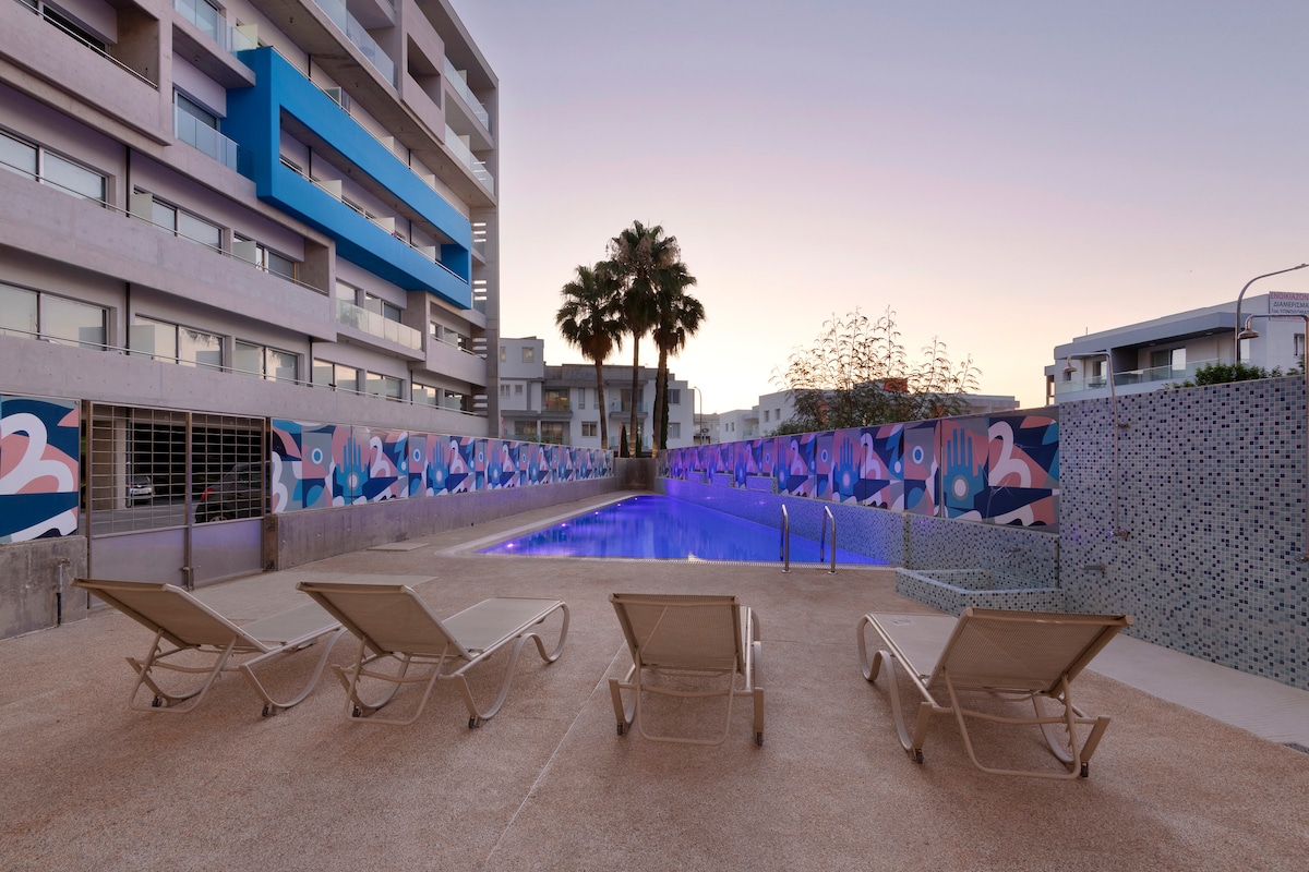 Centrally located in Agia Napa Paul Marie Hotel Apartments are recently renovated, offering to our quests comfort and hospitality.The hotel is 300m from the center and the nearest beach is 1km away.The hotel consist of 23 hotel rooms and 28 self-catering apartments all tastefully refurbished. Hotel facilities include a large lobby area with reception, bar and restaurant. Rooftop swimming pool with snack bar serving food and drinks. Wifi is available in all public areas and rooms. Parking on spot