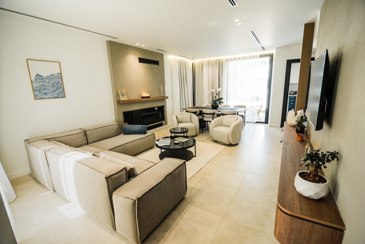 You will like very much experiencing this modern, stylish, well-equipped, well furnished, always fully clean and very tasteful 1 bedroom flat in a perfect spot with total energy and happiness. Comfort and delight are at focus. The location is perfect, only 1 minute walk to main road and buses to Girne. Sandy beach, Merit Hotel Casino, market are at 2 min. walk, supermarket at 10 min., big market at 4 min. walk, fishery at 1 min. Kyrenia is only a few minutes by car. Welcome Meal set with Wine.
