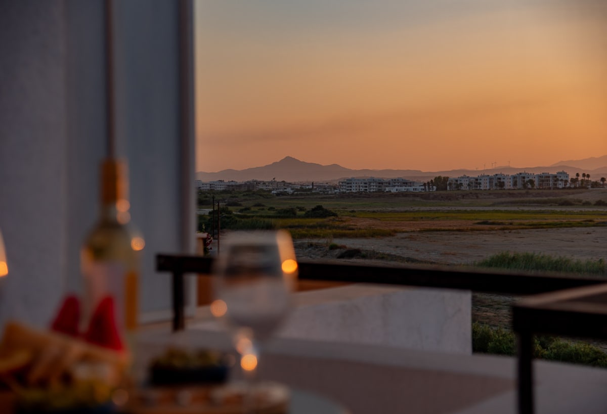 FULLY AIR CONDITIONED designer villa (180m2) standing on its own fenced grounds (2700m2 plot). Ideal for couples and families! Beautiful serene environment! Outstanding views of the Mediterranean sea, the Troodos mountain and the Akamas National Park! Prices include the use of air conditioning and all local taxes! No extra charges whatsoever!
