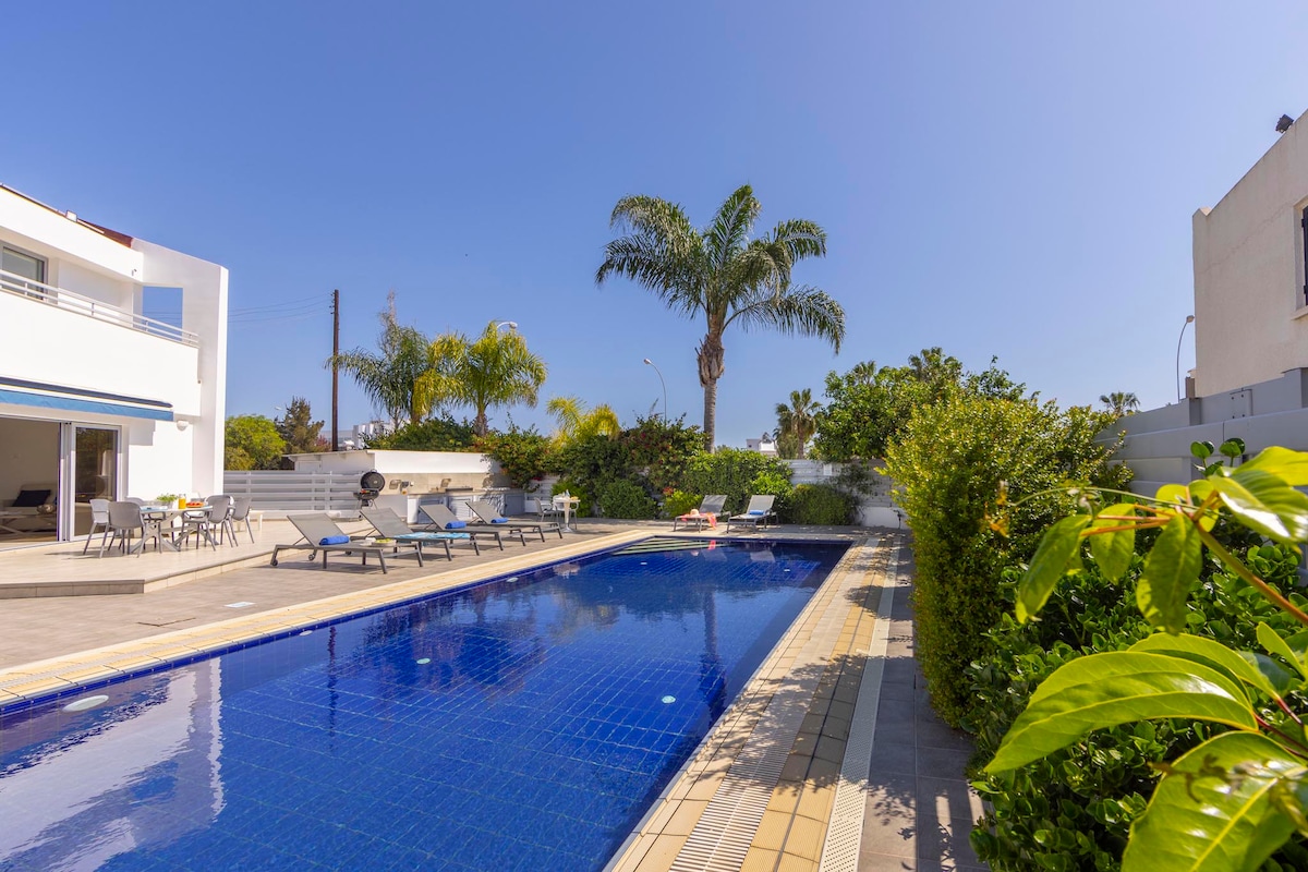 - PRIVATE HEATED SWIMMING POOL, extra charge of 50 euro per day - Brand new luxurious villa, modern design, top quality furniture and fittings - Outdoor kitchenette next to gas grill and outdoor dining table - Very centrally located in the Pharos area of Paphos - Three hundred meters from the popular Lighthouse Beach - Six hundred meters from Kings Avenue Mall - Walking distance from a large variety of shopping options, restaurants, bars - Fast Fiber Optics Internet of 200Mbits D & 50Mbits U
