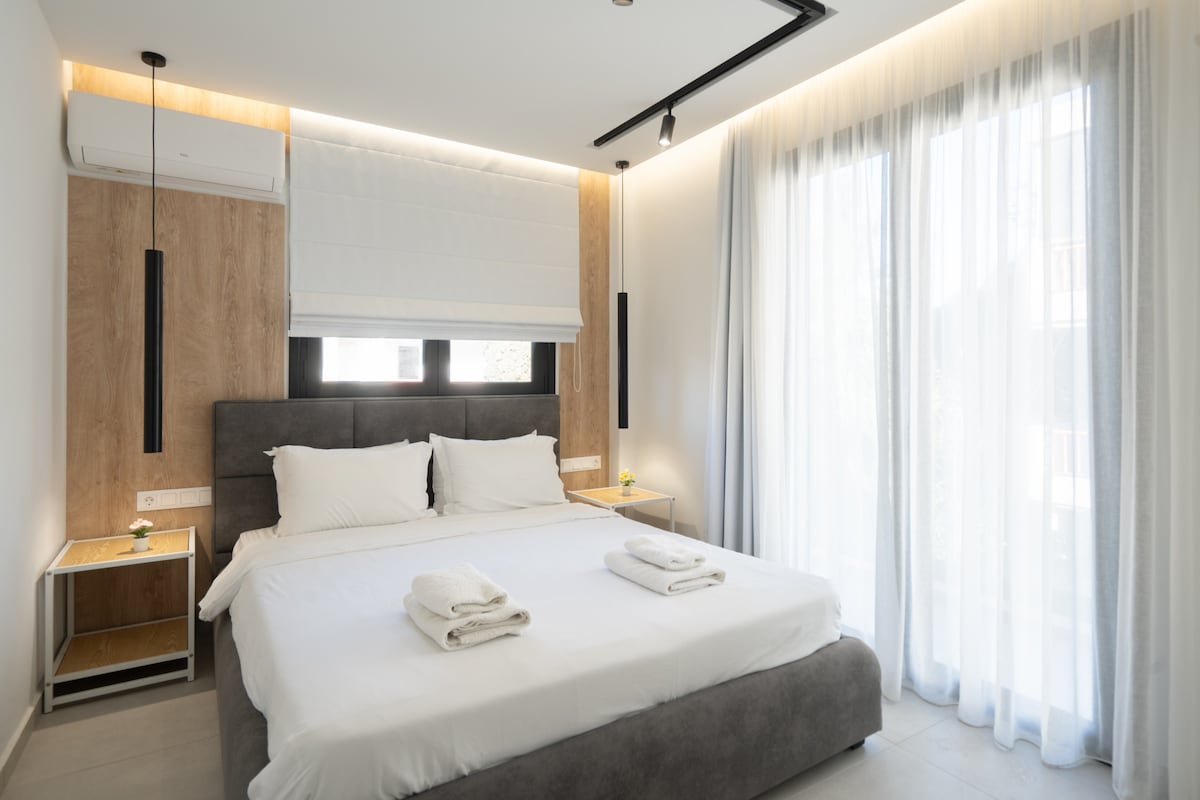 Artemis is a serene sanctuary nestled near the vibrant center of Athens. Perched on the 15th floor, designed with a minimalist aesthetic, it offers a breathtaking panorama of the cityscape, seamlessly blending urban energy with peaceful retreat. Equipped with everything you need for a comfortable and convenient stay, it features a luxurious sauna and jacuzzi, designed to soothe your body and rejuvenate your soul - offering a perfect escape from the hustle and bustle of daily life.