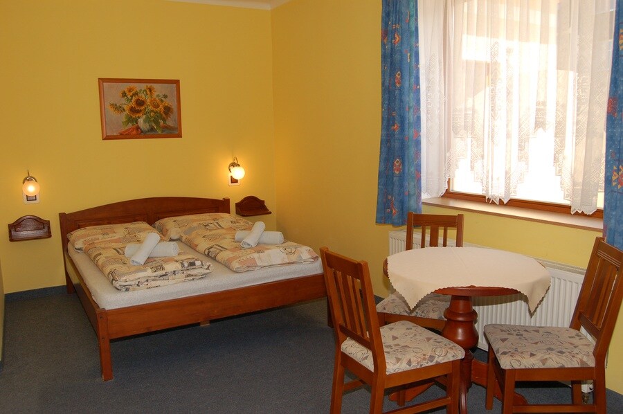 Čtyřlůžkový pokoj je umístěn v podkroví našeho pensionu. Je rozdělen do dvou místností, mezipatro s posezením a hlavním pokoj s manželskou postelí a až dvěmi přistýlkami. Nabízí jedinečný výhled na zámeckou věž a samotné město. Pokoj je vybaven malou lednicí a rychlovarnou konvicí. Pension Fortna leží v historickém centru Českého Krumlova přímo na břehu řeky Vltavy. Nabízí výhled na hrad a zámek Český Krumlov, který se nachází 5 minut od pensionu, stejně jako náměstí Svornosti.