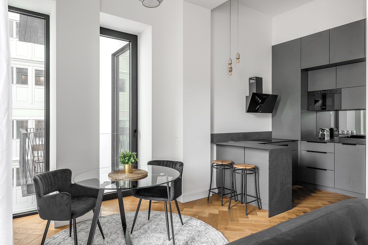 Gentleman Spirit Residence Prague Experience timeless elegance at Gentleman Spirit Residence Prague, where sophistication meets unmatched comfort. Located in the heart of the famous Zizkov district, this luxurious residence radiates a spiritual aura, with its rich textures, custom furnishings, and charismatic touch of vitality and dark energy. Enjoy the fully equipped kitchen, relax in the elegant living area, and rest in ultimate comfort, surrounded by an atmosphere that inspires and recharges