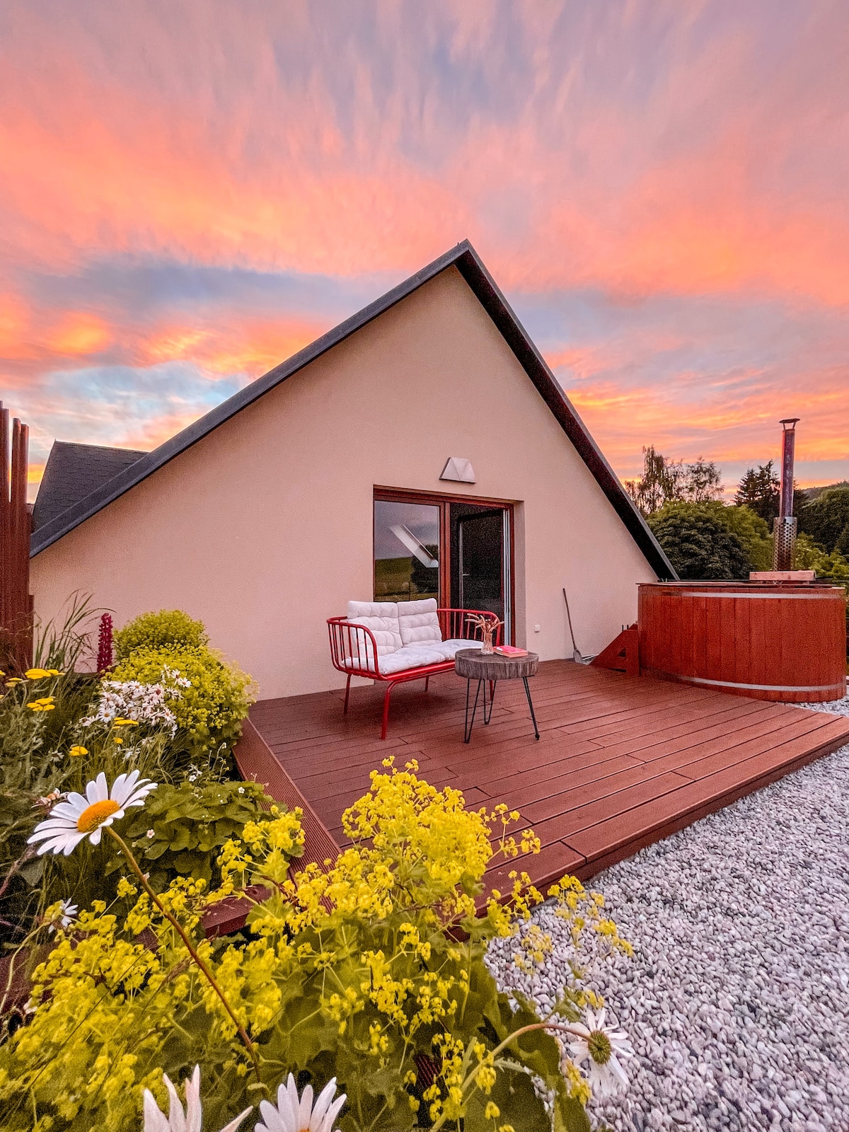 V Krušných horách nedaleko Karlových Varů a Božího Daru v malé vesnici jsem si vytvořili naše útočiště. S citem rekonstruované podkroví s výhledem do přírody a koupacím sudem na terase (za příplatek) a domácím kinem. Rádi Ti naše místo propůjčíme. K dispozici Ti bude celý prostor včetně terasy. Pomůžeme naplánovat výlet a objevit krásy Krušnohoří. Staráme se o naše místo s láskou a pečlivostí. Chceme, aby ses tu i Ty cítil jako doma. Hory, příroda i lázeňské město od každého je tu trochu!