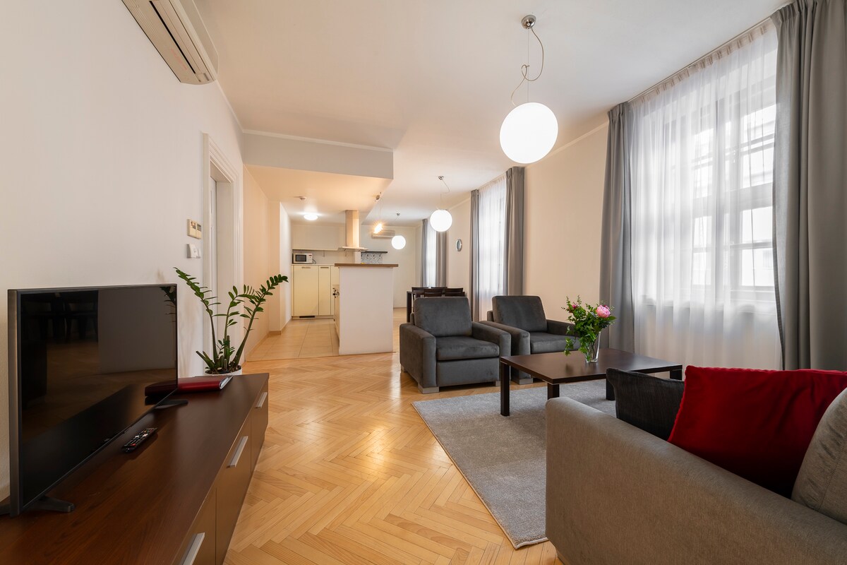 Newly refurbished & beautifully decorated apartment next to the OLD TOWN SQUARE with Renaissance staircase and many beautiful historical elements apartment offers: free high-speed WIFI, fully equipped kitchen with dishwasher, TV with international channels, sound-proof windows, quality mattresses for your comfortable sleep, air-condition and a new modern interior combined with beautifully preserved old wooden floors. Comfortably sleeps 4 guests. To all our guests coffee and teas are provided