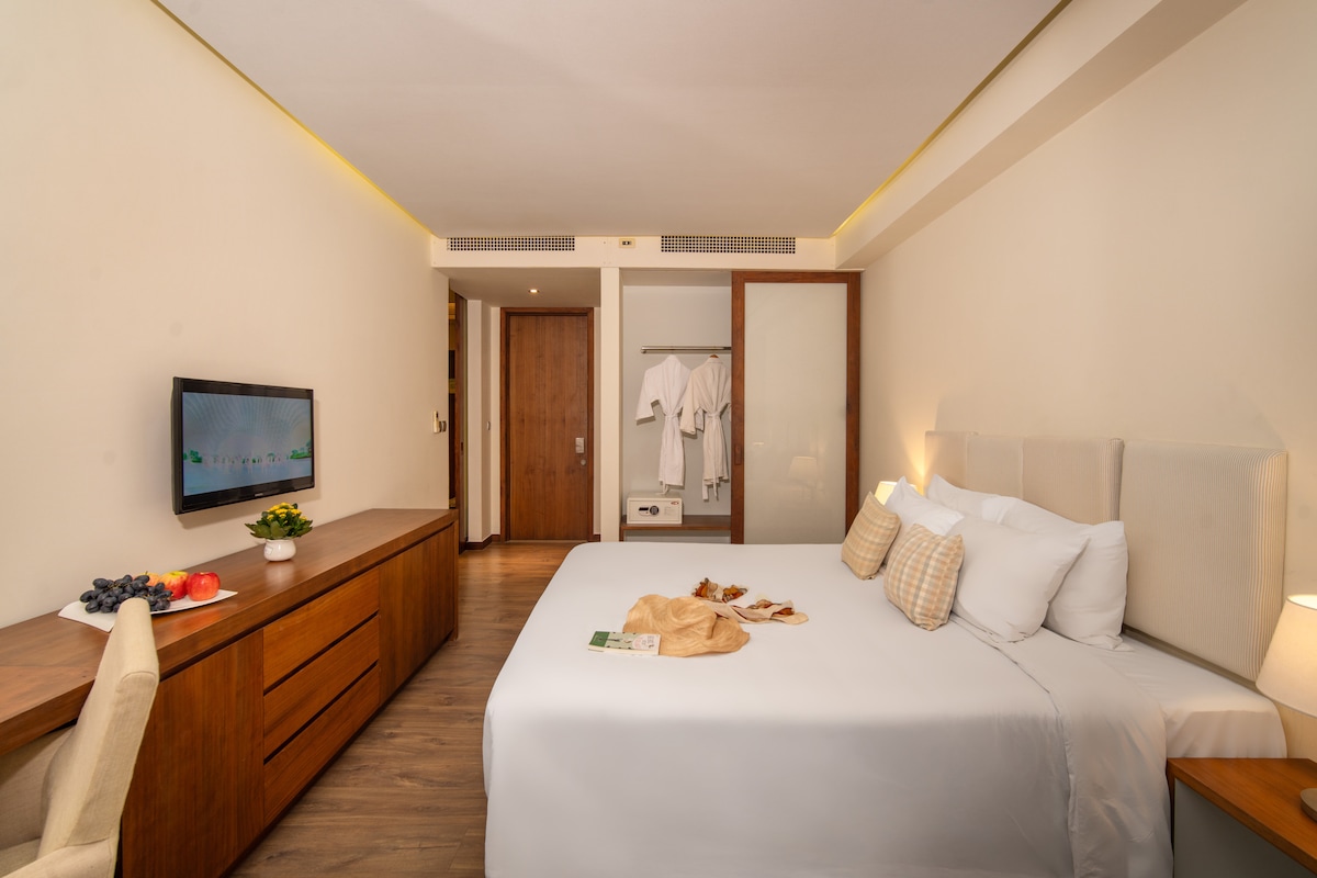 Welcome to the Beachfront Lovers Bliss Retreat, a luxurious 5-star apartment perfect for couples. Located on My Khe Beach, this retreat offers stunning ocean views and a romantic atmosphere, enjoy a stylish apartment featuring a plush king-sized bed and a fully equipped kitchen for preparing meals together. Indulge in our on-site restaurant for delightful local and international cuisine.